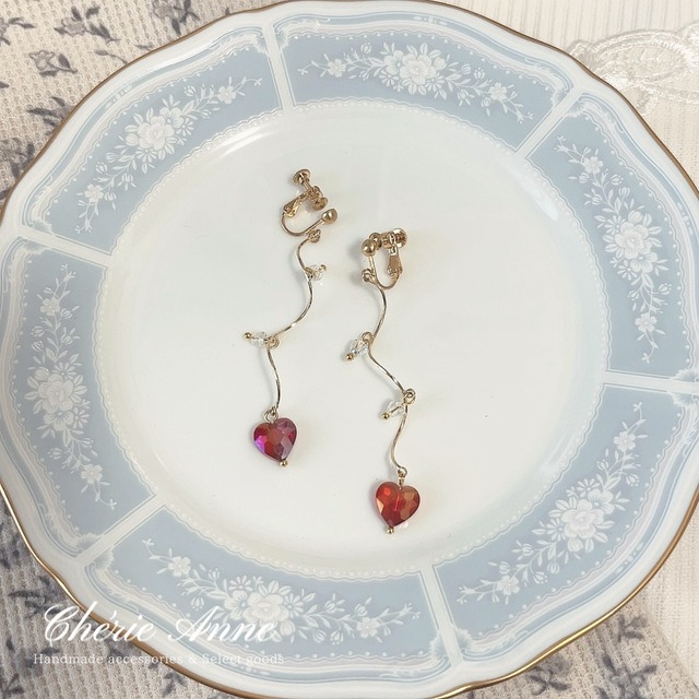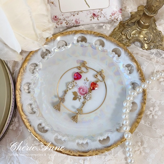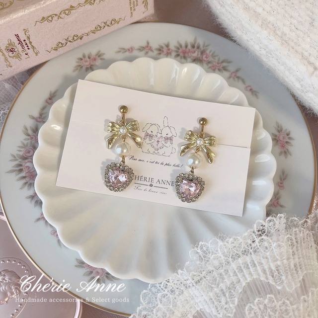 Ribbon heart bijou earring ♥リボンハートビジューイヤリング