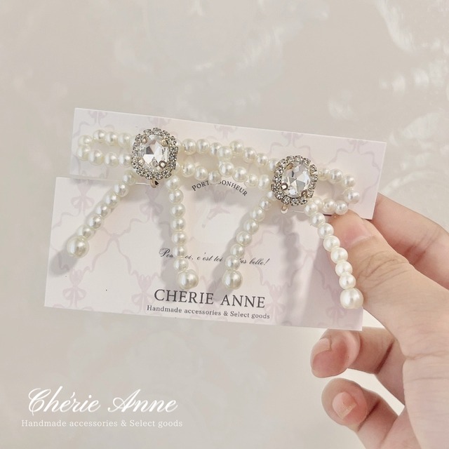 華やかに可愛く、わがままな乙女のためのリボンパールイヤリング。 上品なパールと可愛らしいリボンデザインがマッチ。 まるで気まぐれな子猫ちゃんのようなコケティッシュな雰囲気に。 ガーリーな中に、落ち着いたエレガントさも兼ね備えているアイテムです。 フレンチガーリーアイテムと合わせても♡ 大ぶりのリボンがコーディネートを格段と素敵に仕上げてくれます。 ※ネジバネ式イヤリングのみのご用意となります。 ✦サイズ✦ 横:38mm 縦:42mm ✦カラー✦ クリスタル