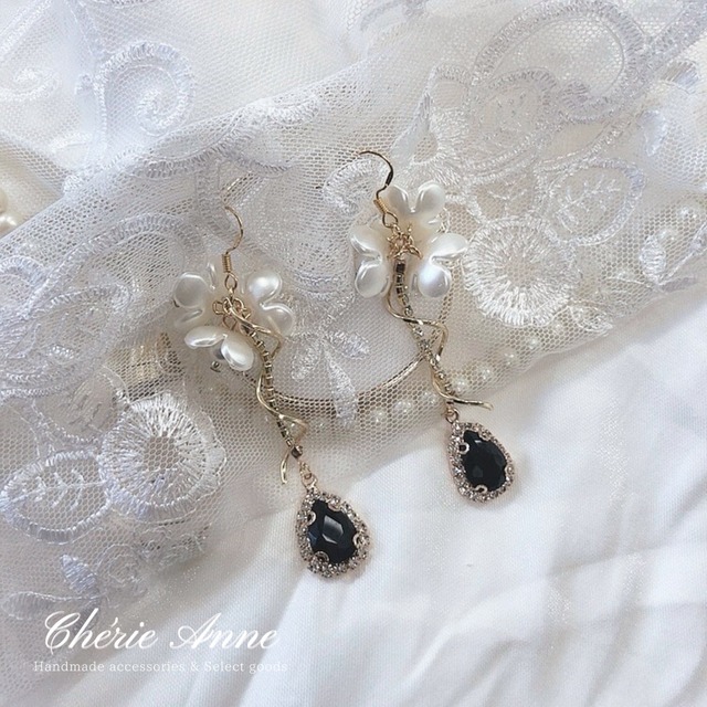 Crepuscule フラワービジューの黄昏レディイヤリング/ピアス ブラック