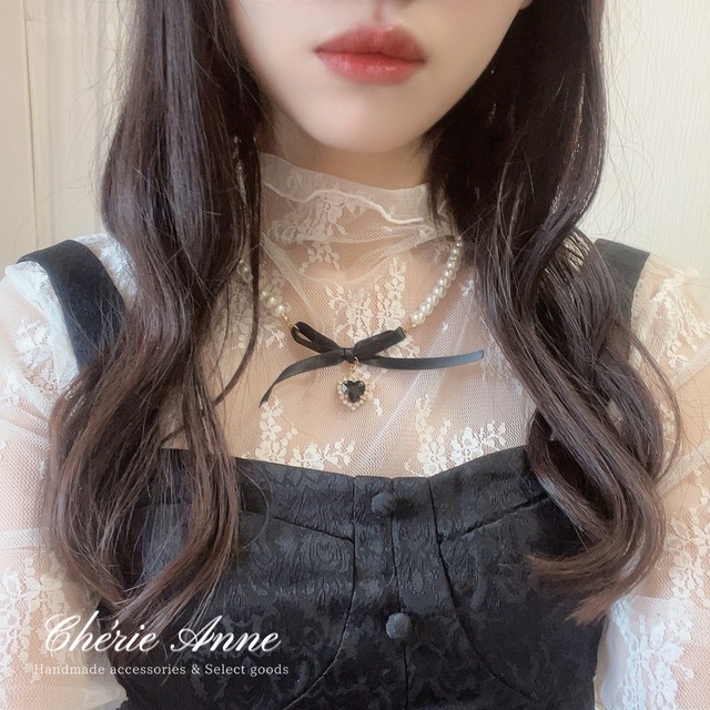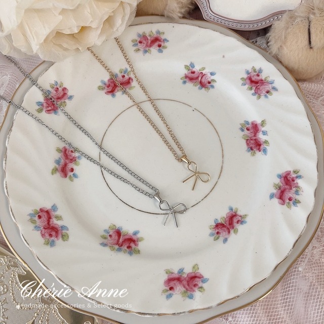 Ribbon bijou necklace ♡ 恋する乙女のリボンビジューネックレス フレンチガーリー