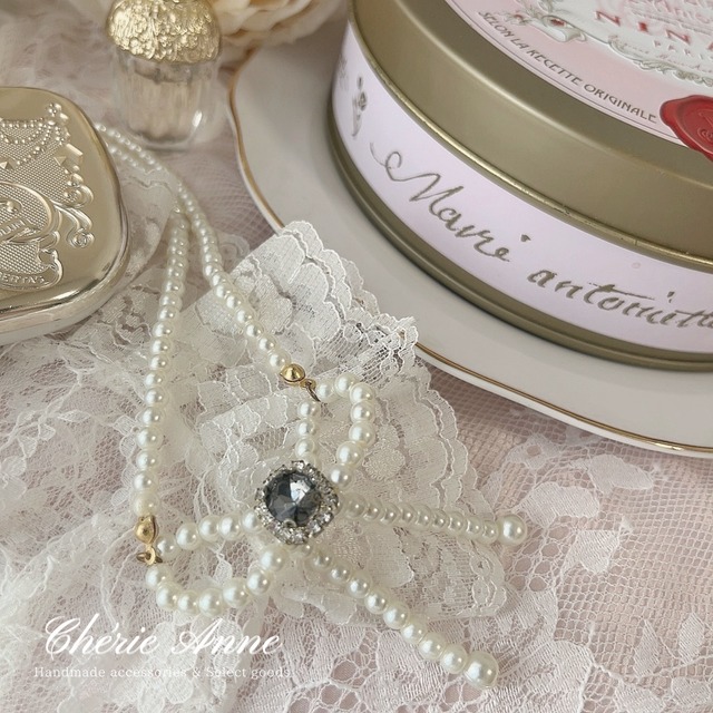 Ribbon bijou necklace ♡ 恋する乙女のリボンビジューネックレス フレンチガーリー