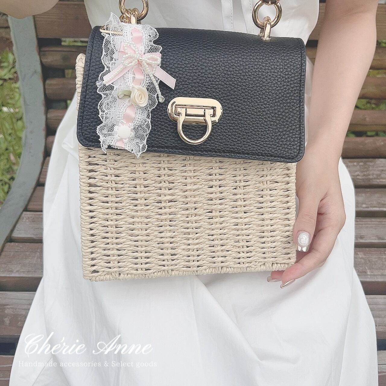 カゴバッグや涼しげな素材のカバンにもぴったりのデザインで、華やかさをプラスします。