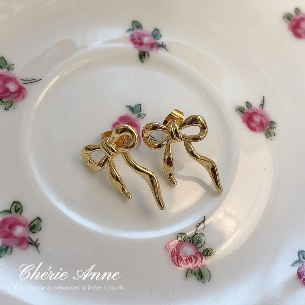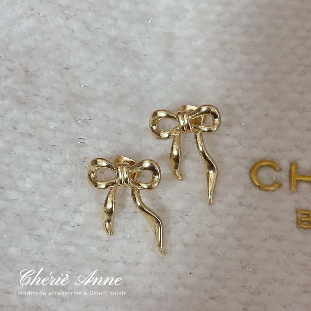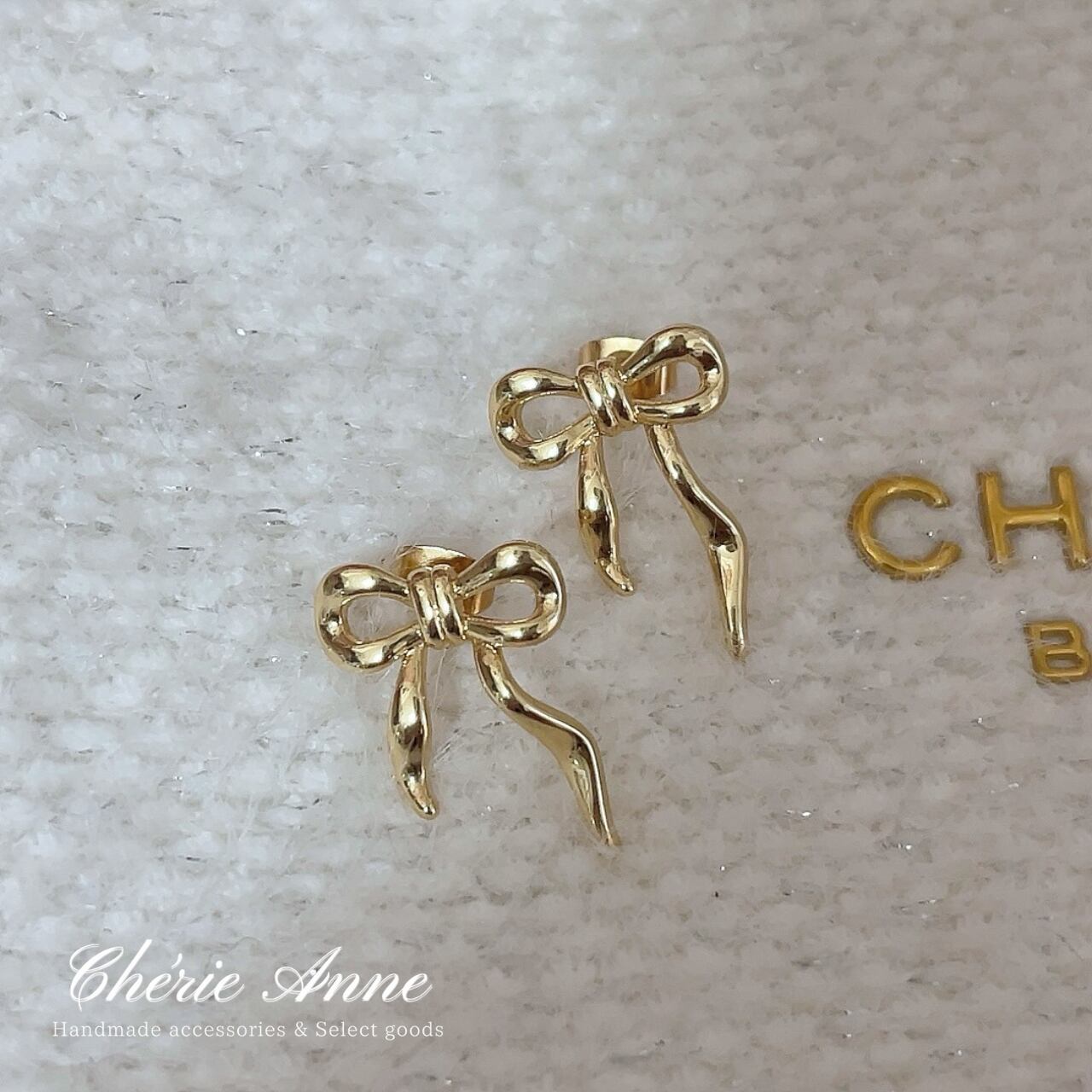 日常のひとときを特別に変える、エレガントなゴールドリボンピアス。