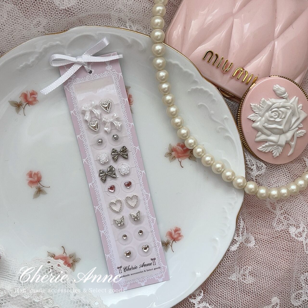 ホワイトやシルバーでまとめた、フレンチガーリーテイストに仕上げたジュエリーです。