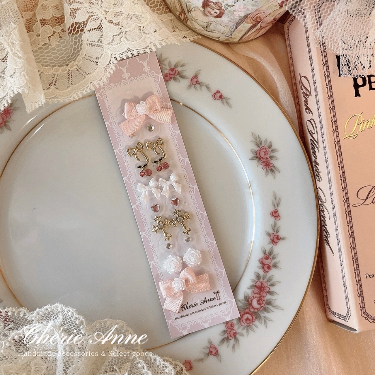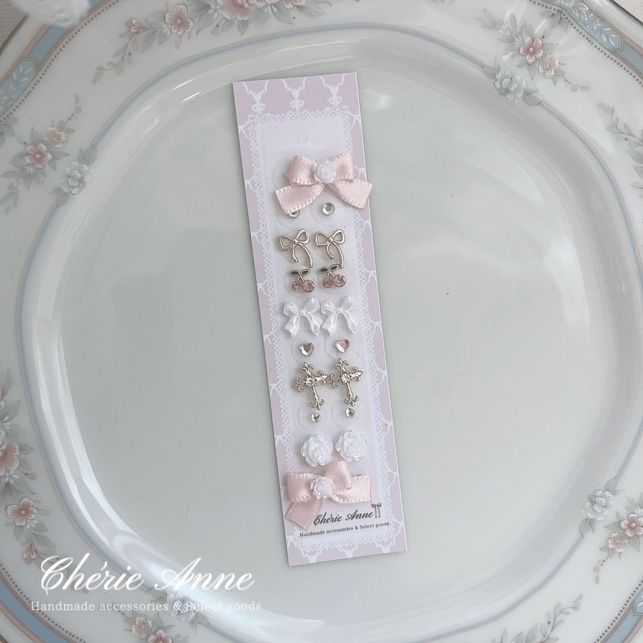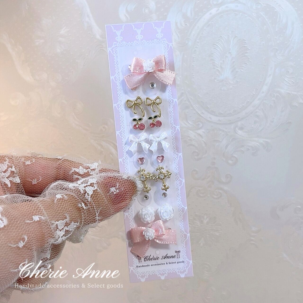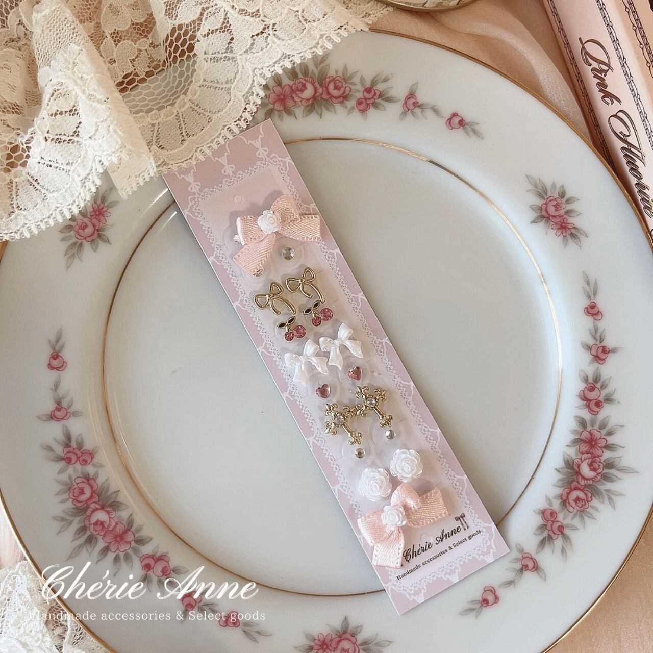 チェリーやクロス、ローズなど可愛いモチーフをたくさん詰め込んで仕上げました。
