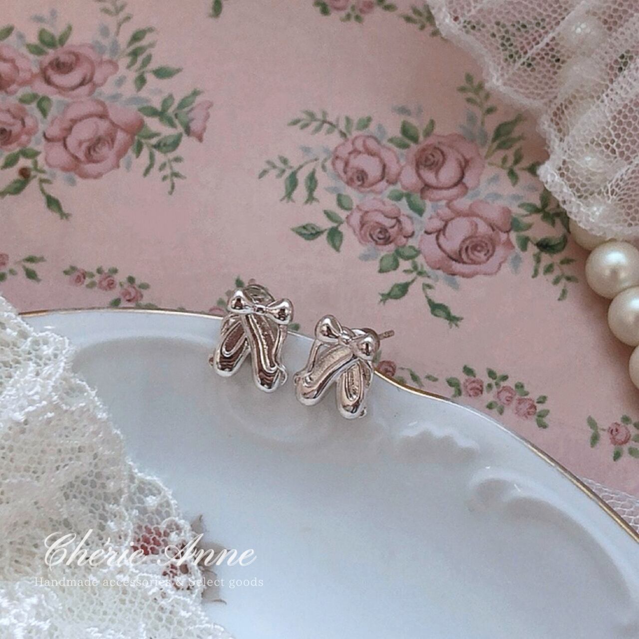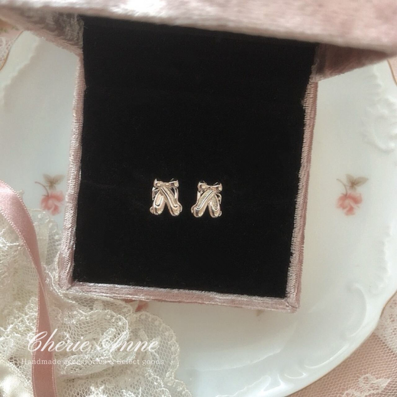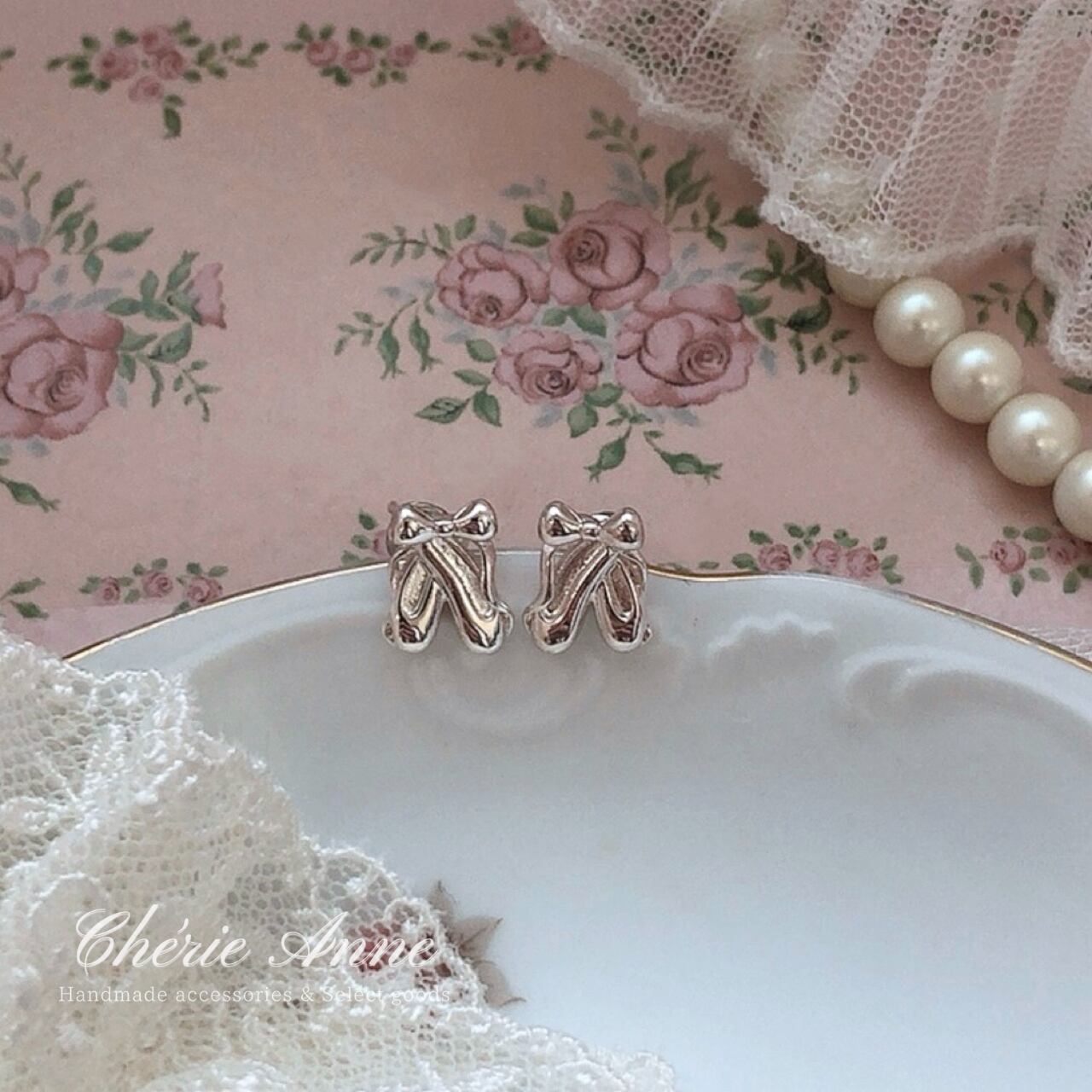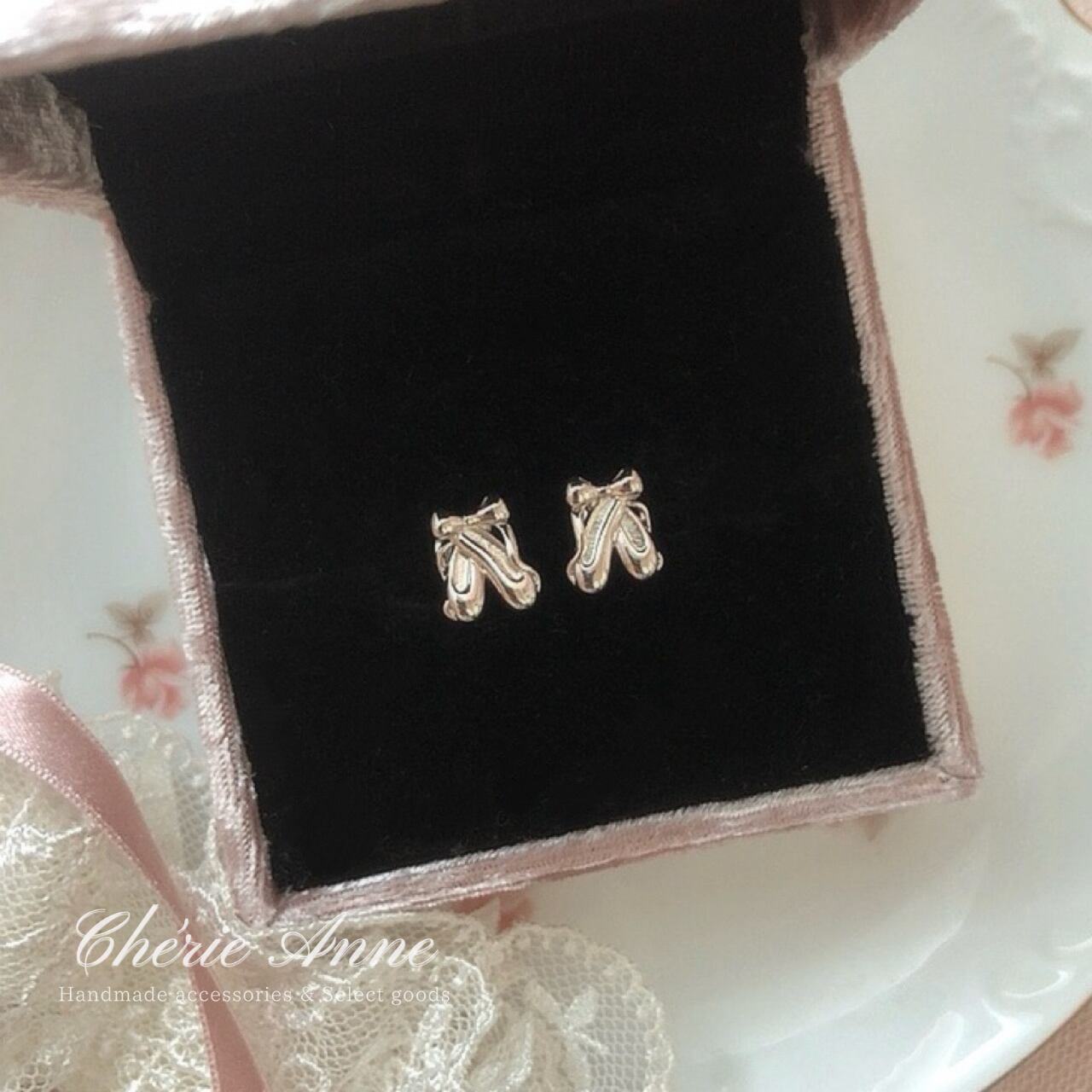 リボンも付いた小さなモチーフが可愛いトゥーシューズのピアス。