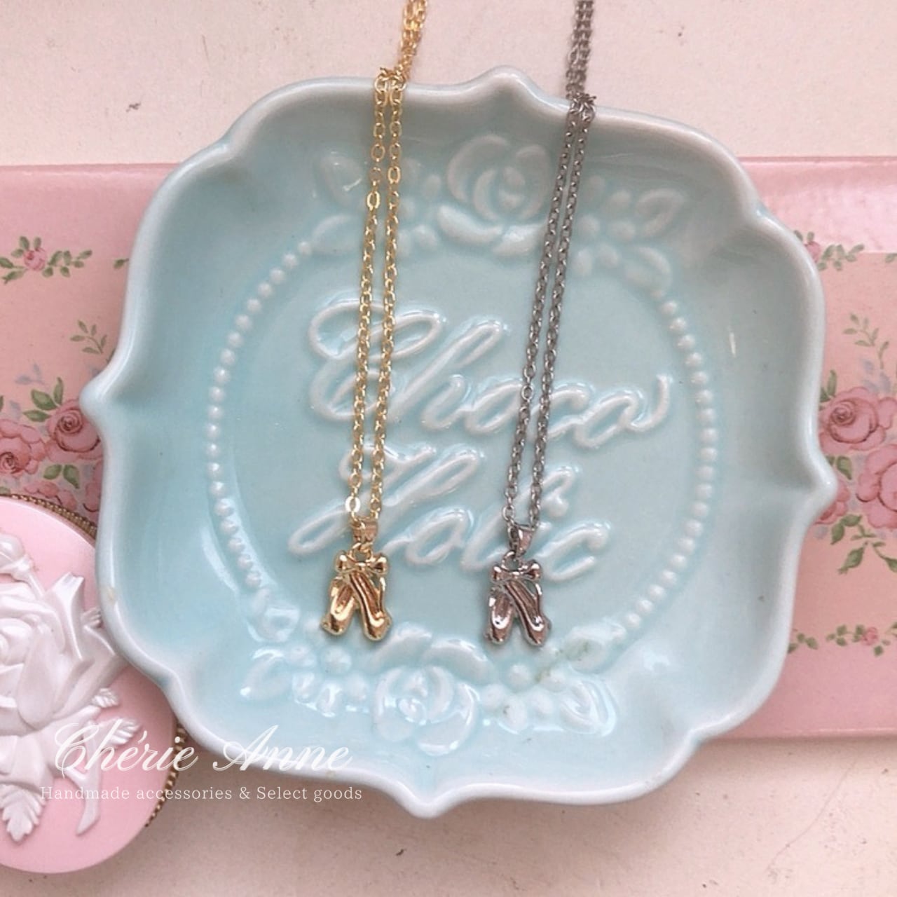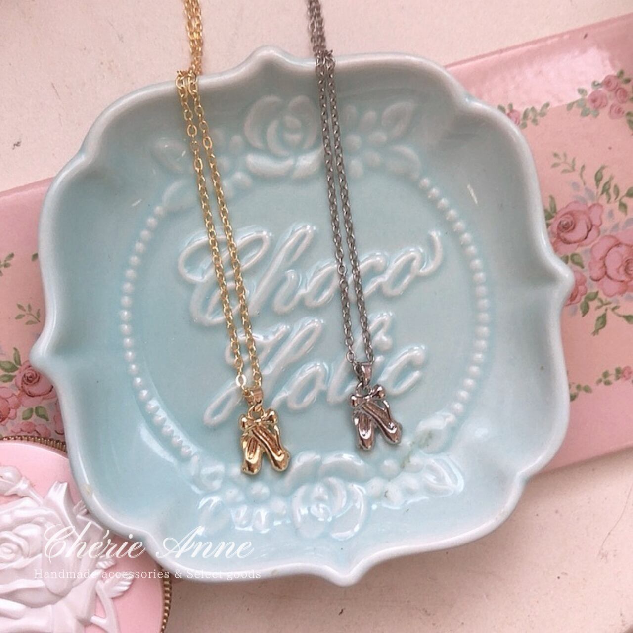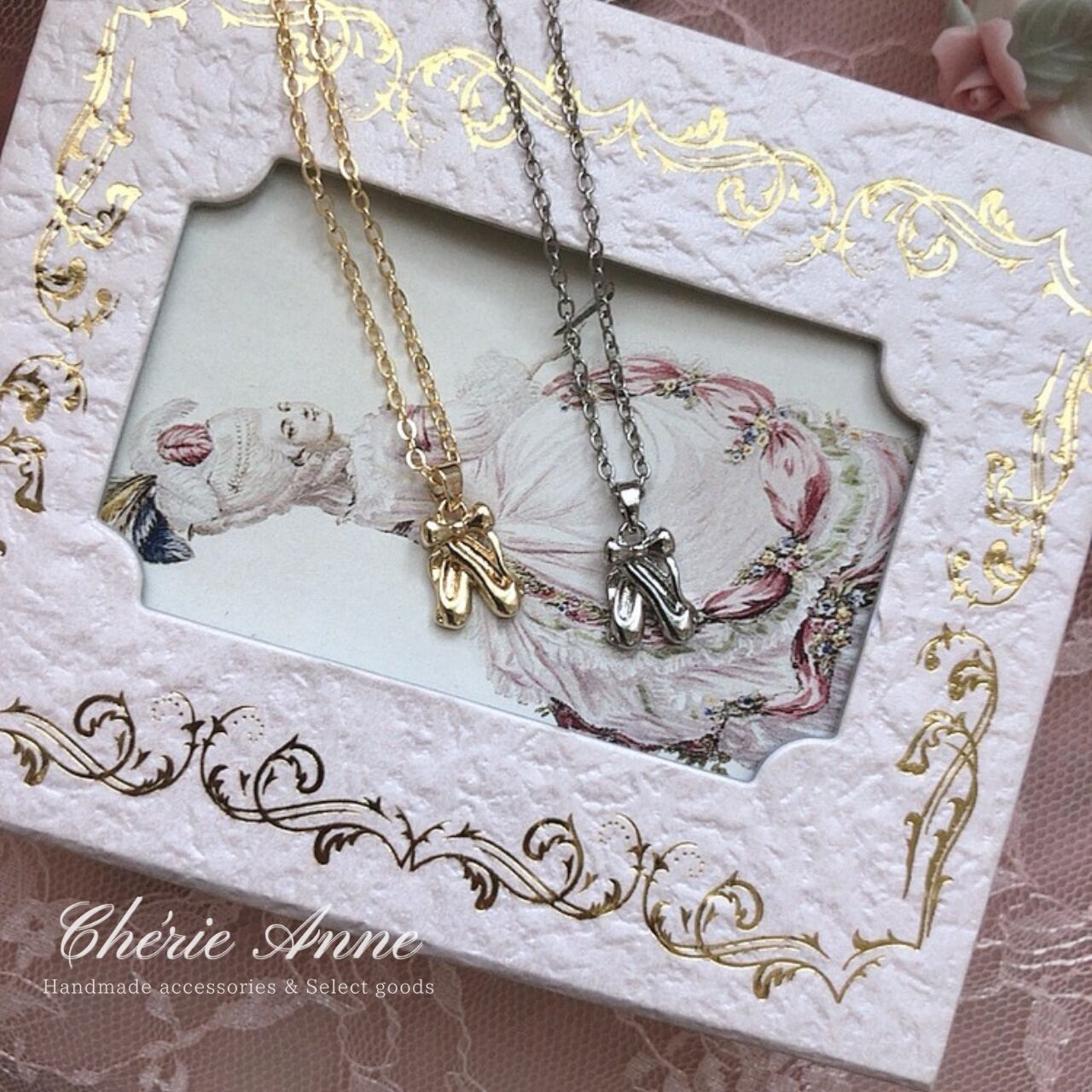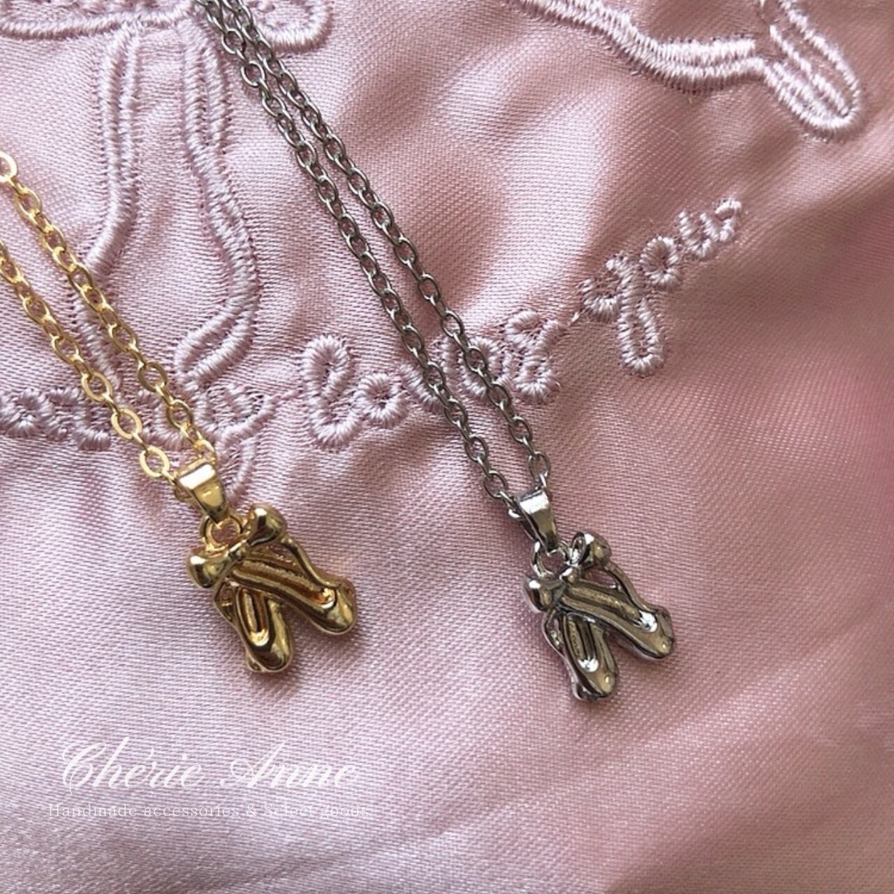 バレリーナの夢を閉じ込めたような優美でキュートなトゥシューズのモチーフネックレス。