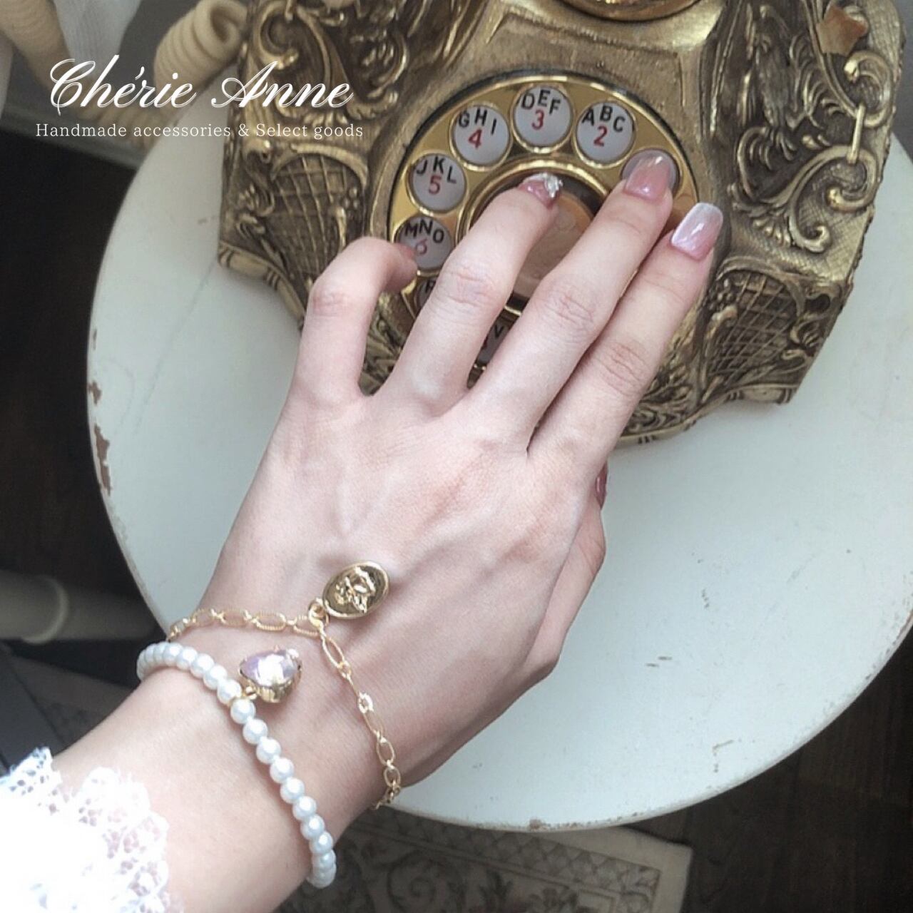 このブレスレットは、お茶会やパーティーシーンでの装いを華やかに彩ります。
