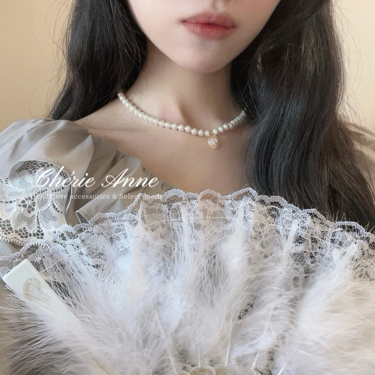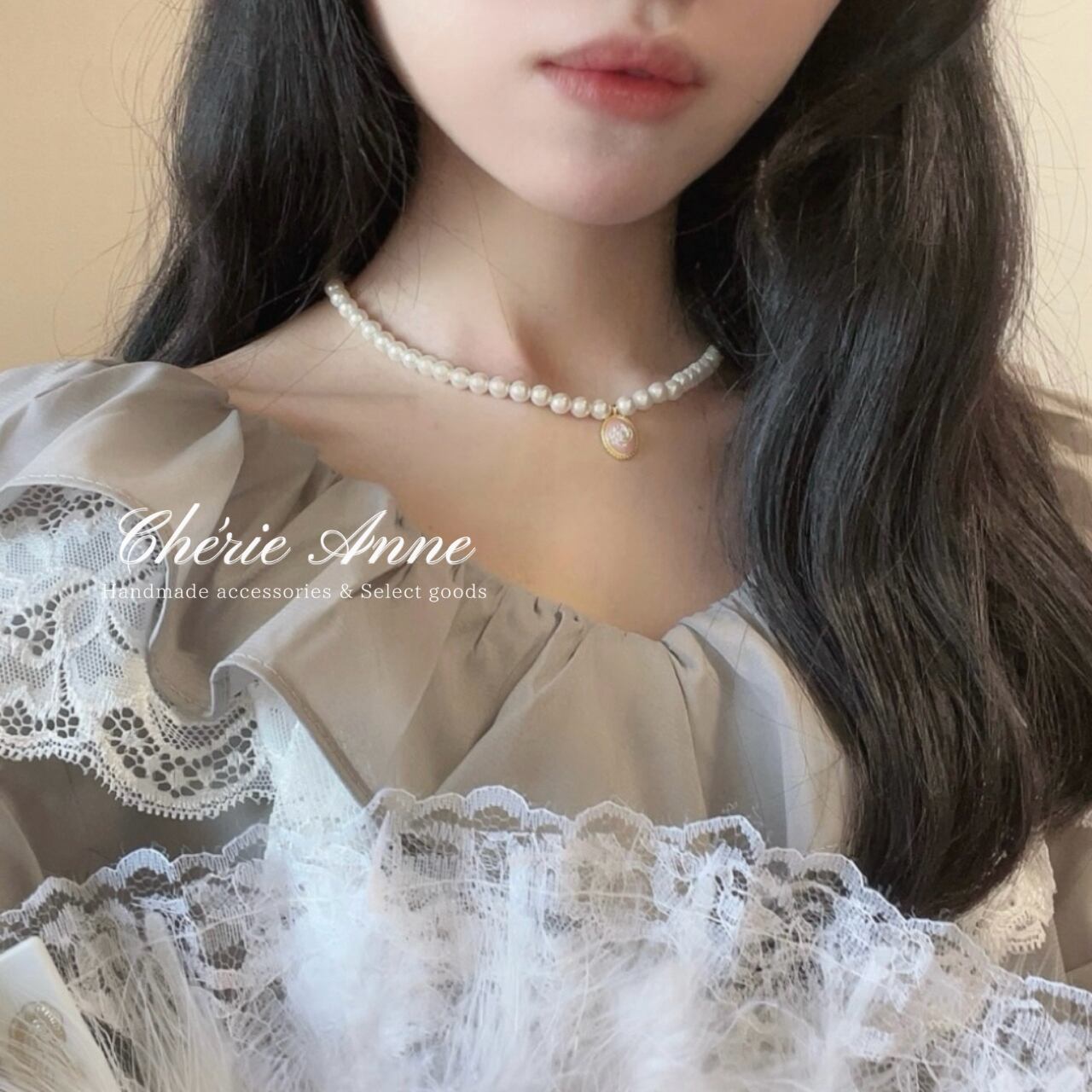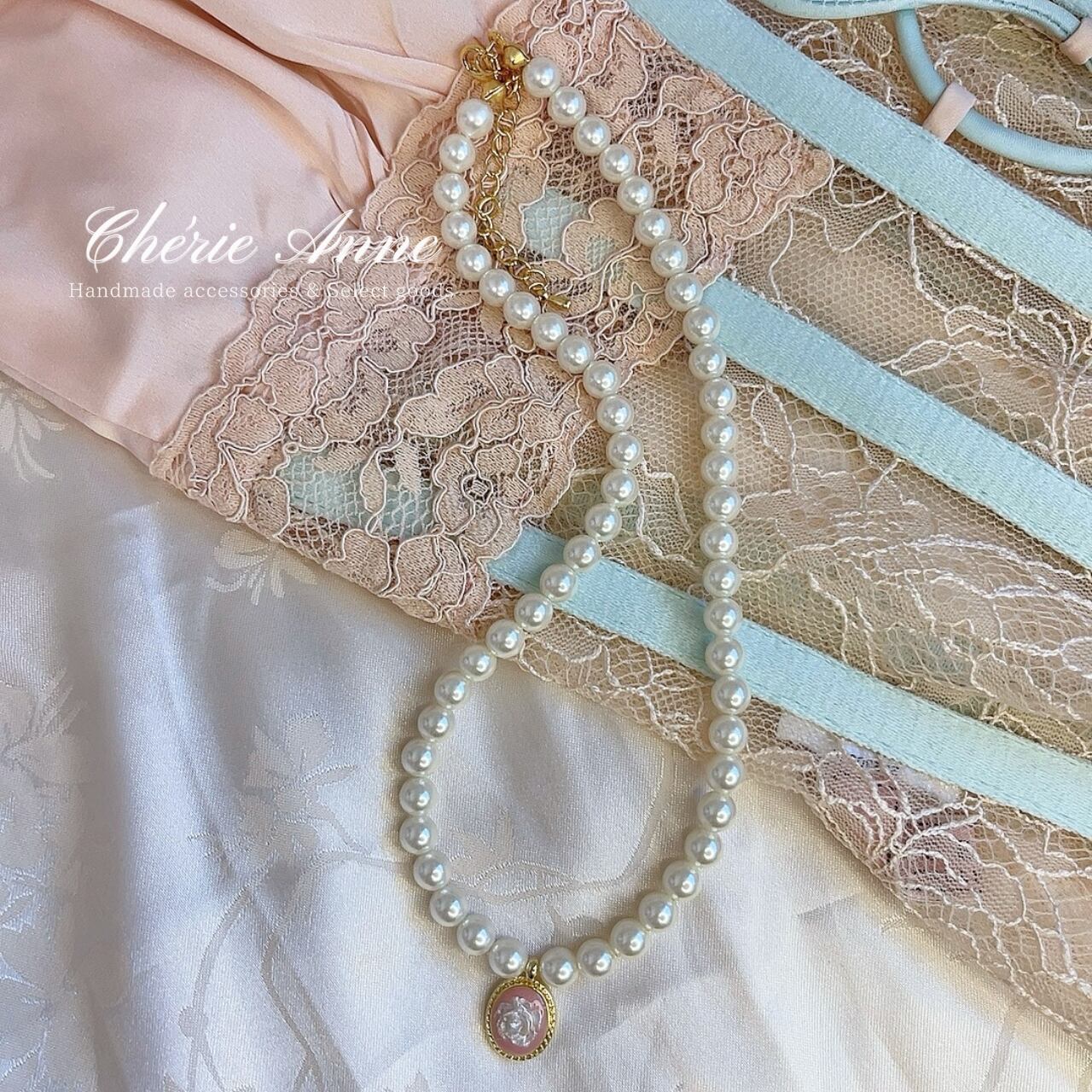 ローズショコラの誘惑 カメオパールネックレス Rose Chocolat Necklace