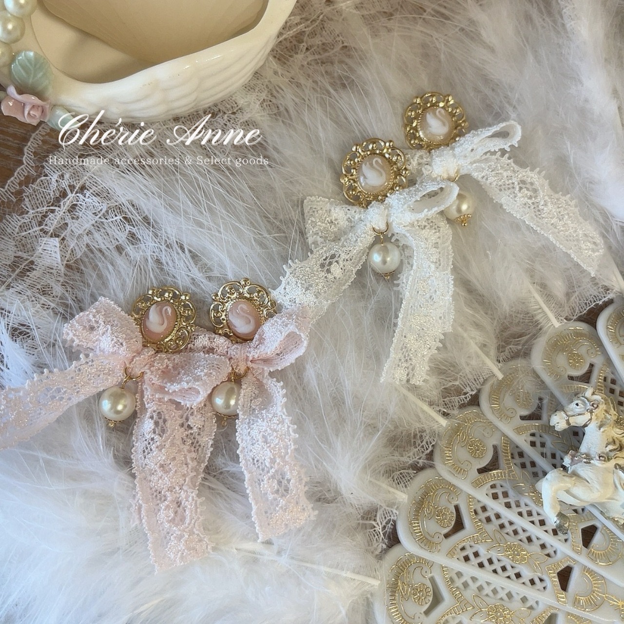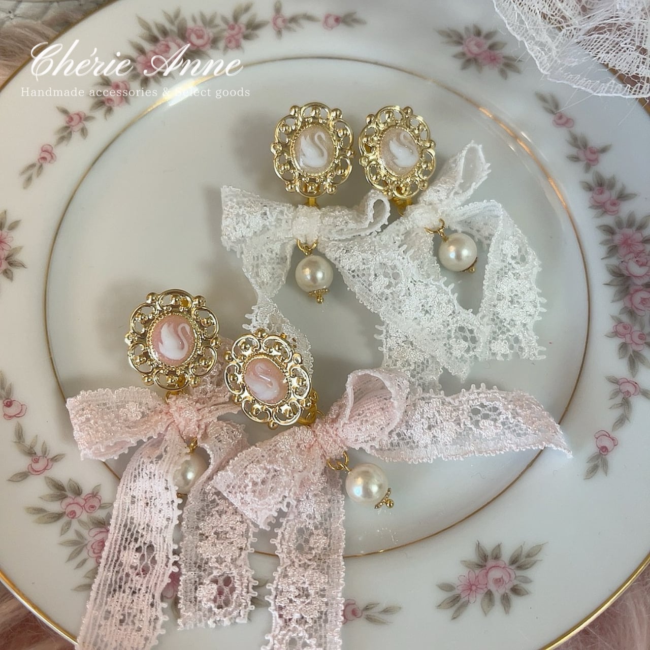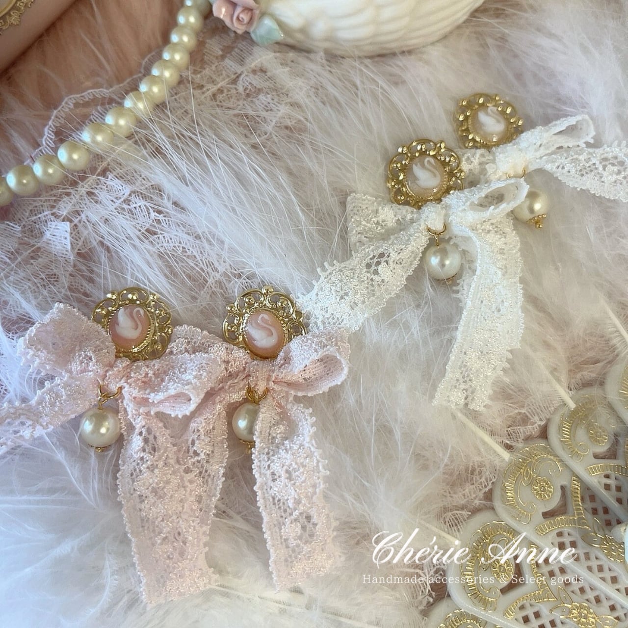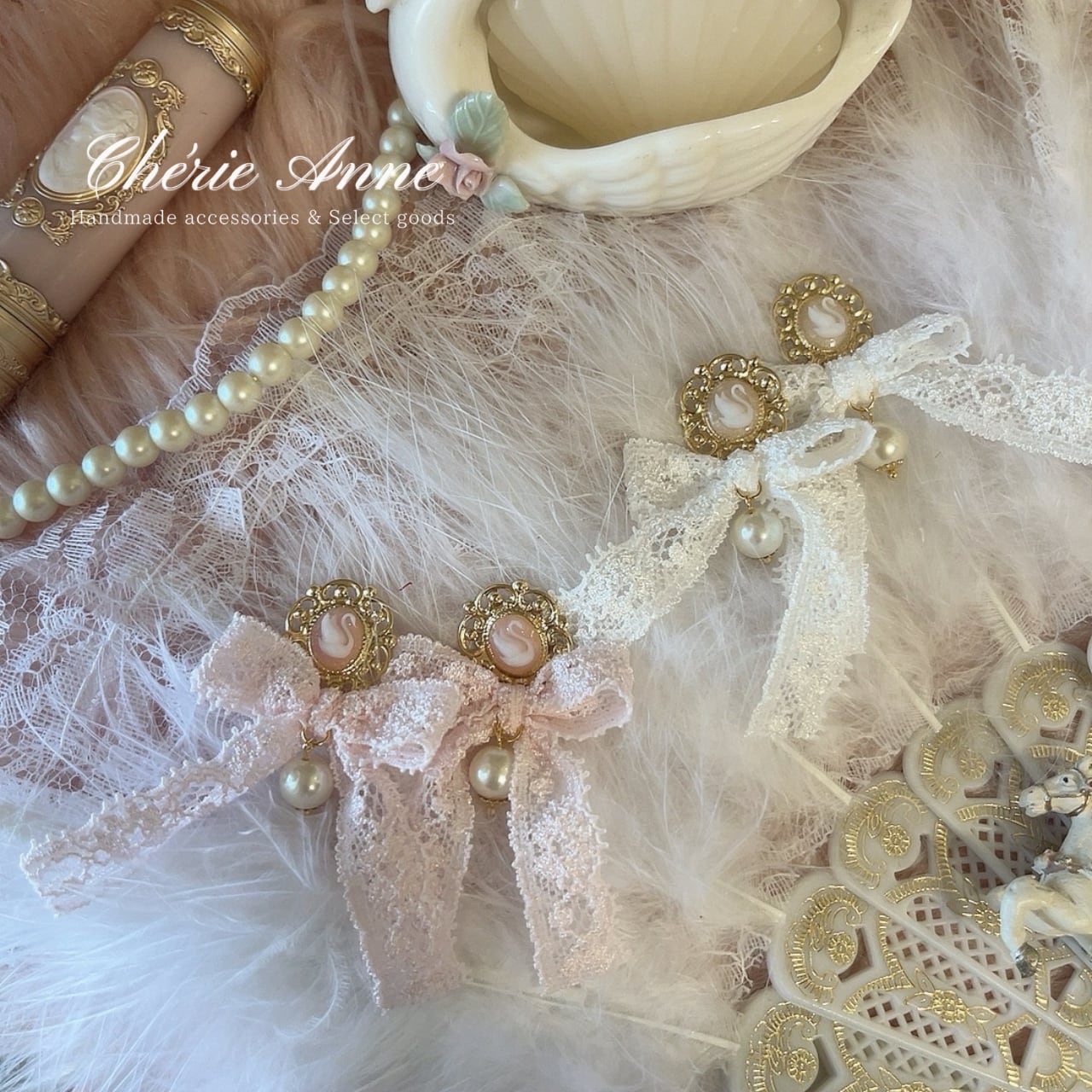 #ゴールドアクセサリー #イヤリング #ピアス #ゴールド #ピンク #ガーリー #大人かわいい #カメオ #白鳥 #スワン #レース #リボン #乙女 #春 #お嬢さま #乙女 #マリーアントワネット #コケットコア #コケティッシュ #ヴィンテージガーリー #バレエコア #ロマンティックコア #フレンチガーリー #クラシカル #イベント #推し活 #お茶会 #パーティ #記念日 #デート #お出かけ #ギフト