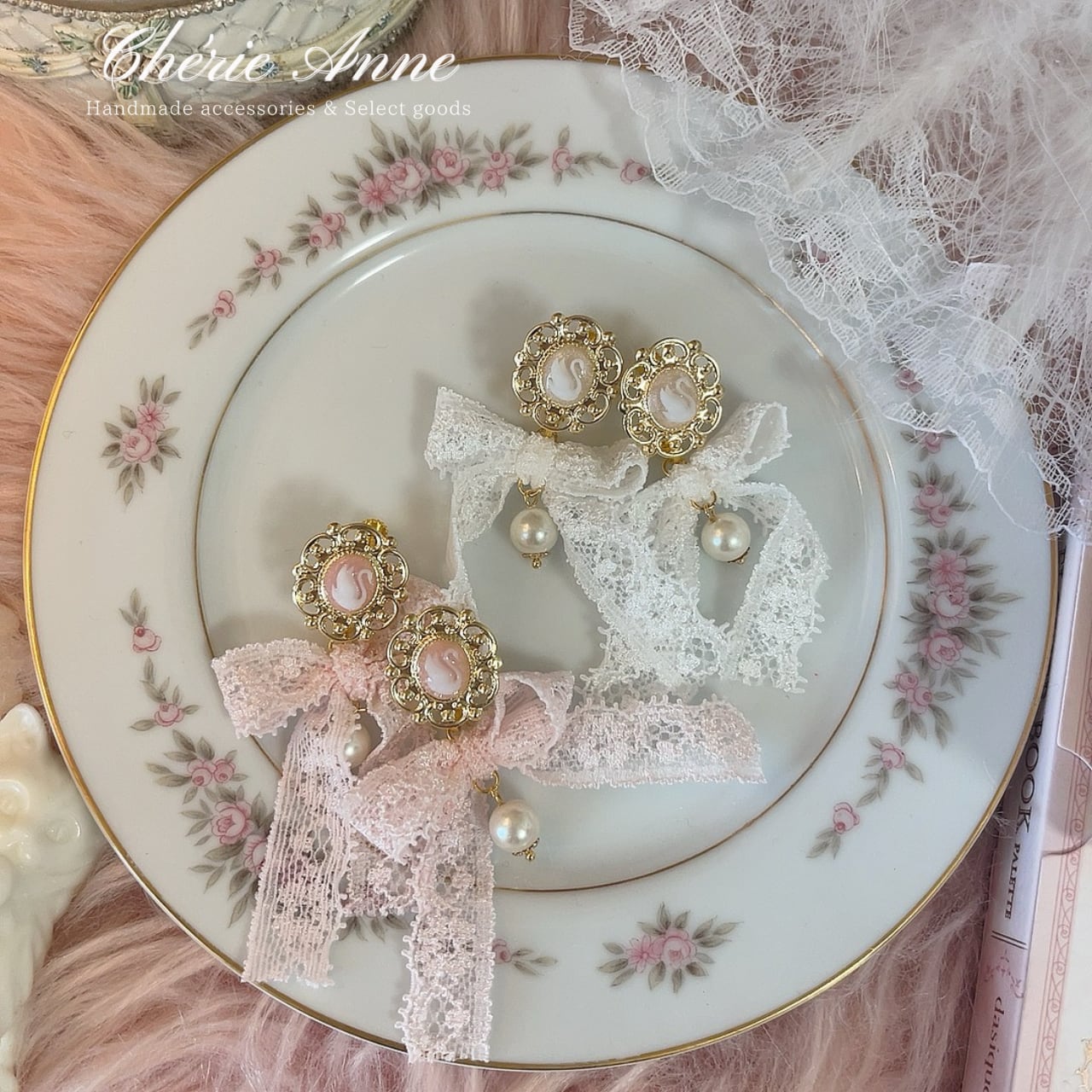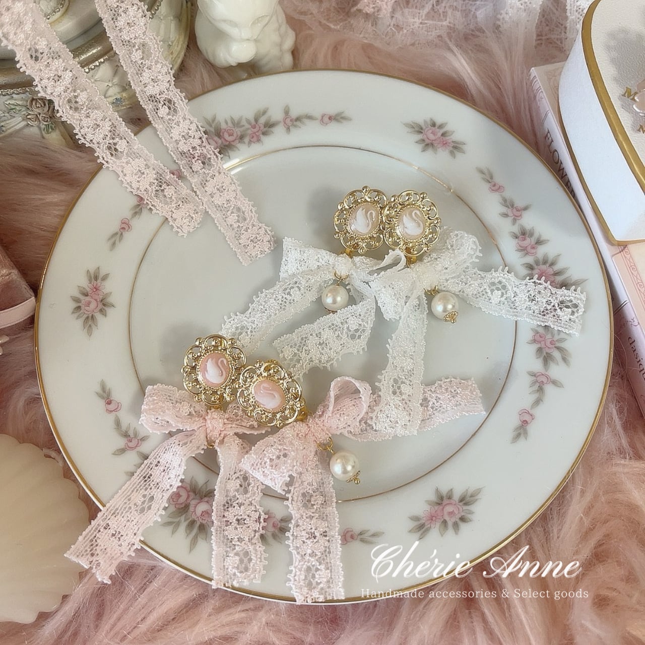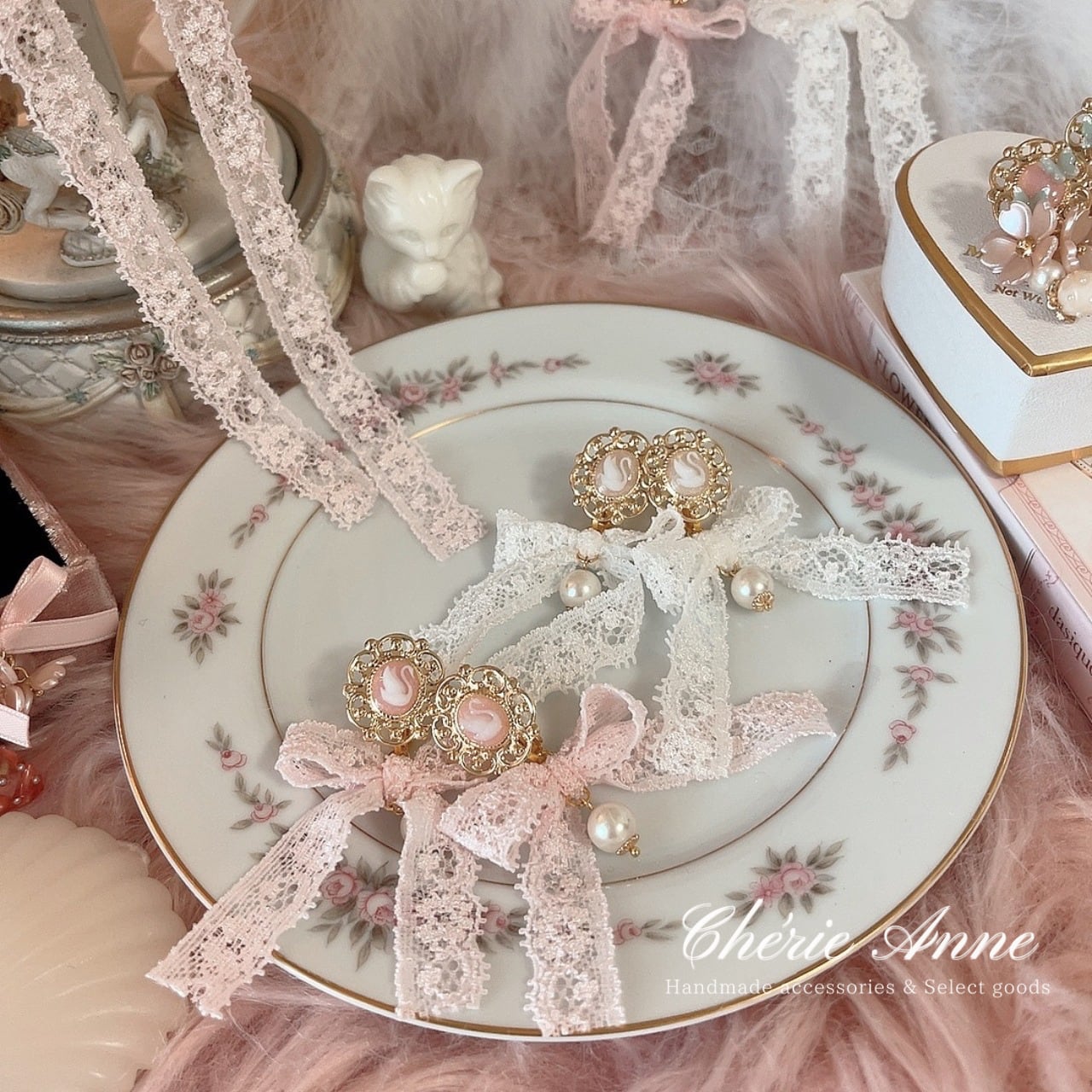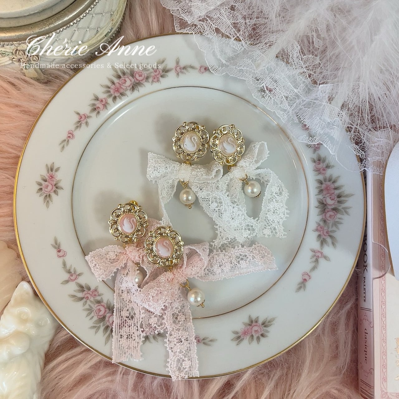 #ゴールドアクセサリー #イヤリング #ピアス #ゴールド #ピンク #ガーリー #大人かわいい #カメオ #白鳥 #スワン #レース #リボン #乙女 #春 #お嬢さま #乙女 #マリーアントワネット #コケットコア #コケティッシュ #ヴィンテージガーリー #バレエコア #ロマンティックコア #フレンチガーリー #クラシカル #イベント #推し活 #お茶会 #パーティ #記念日 #デート #お出かけ #ギフト