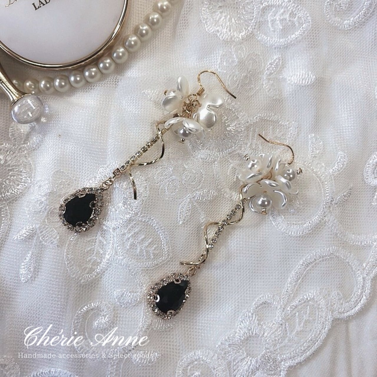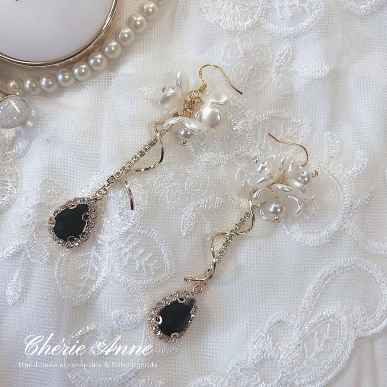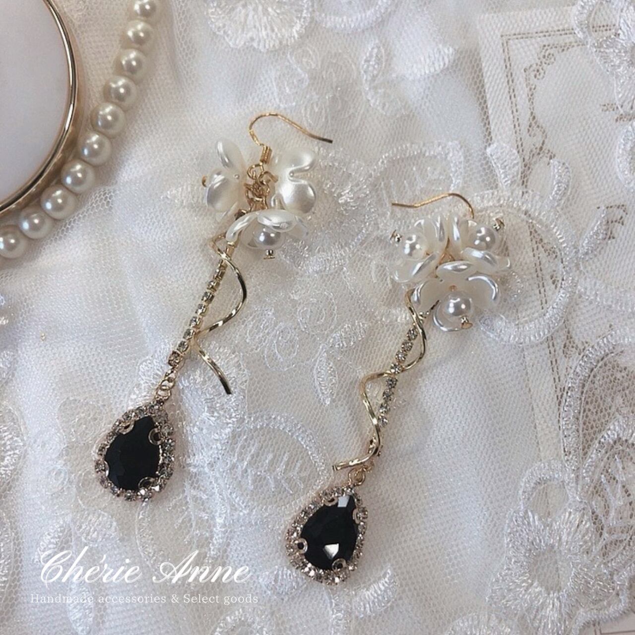 お花やビジューが華麗でゴージャスな印象のイヤリング。