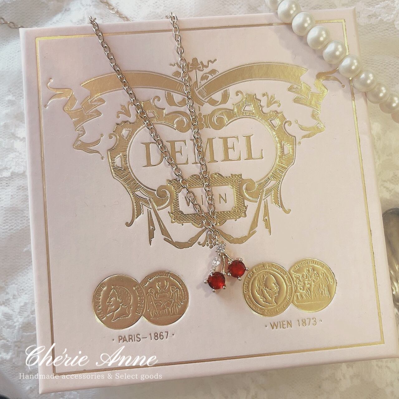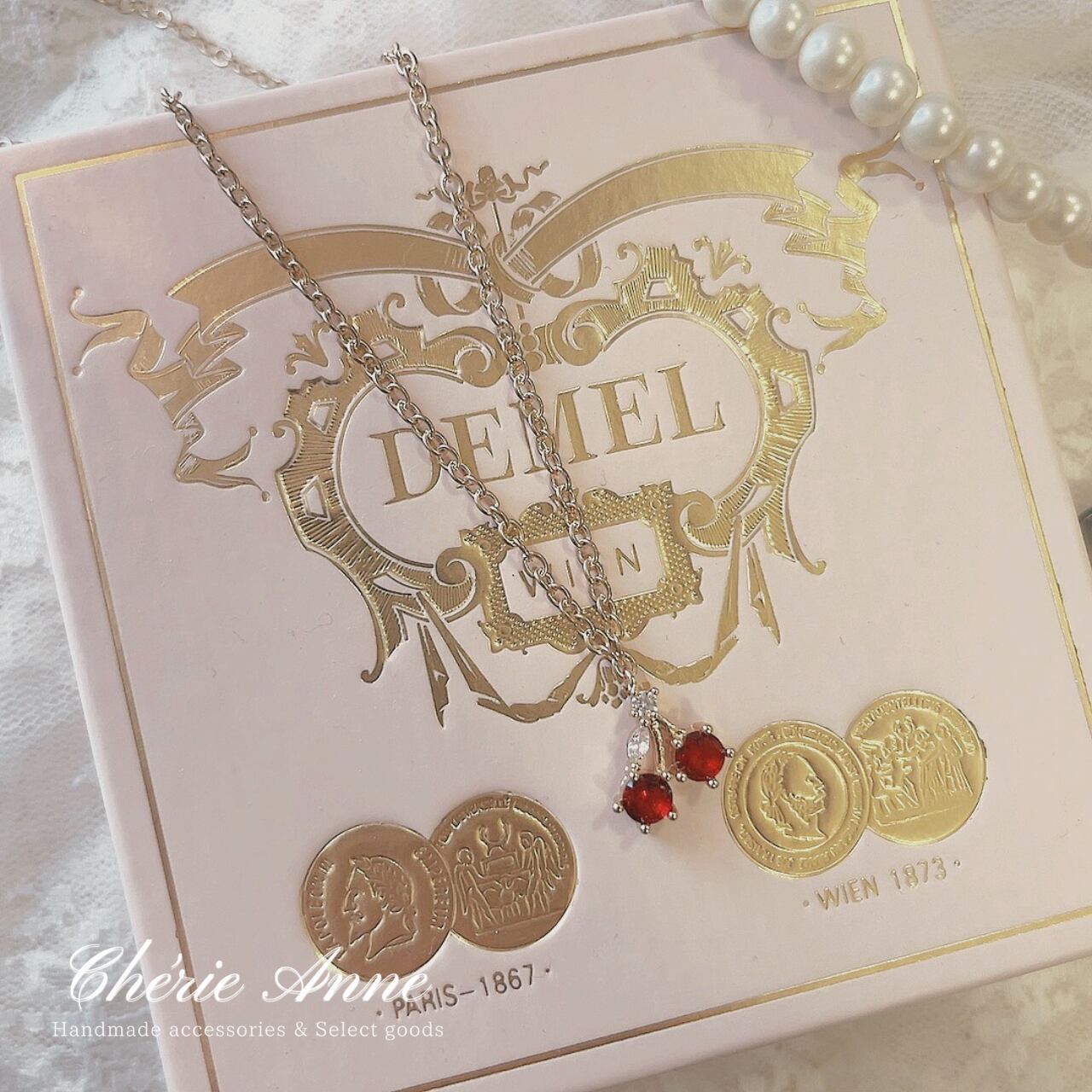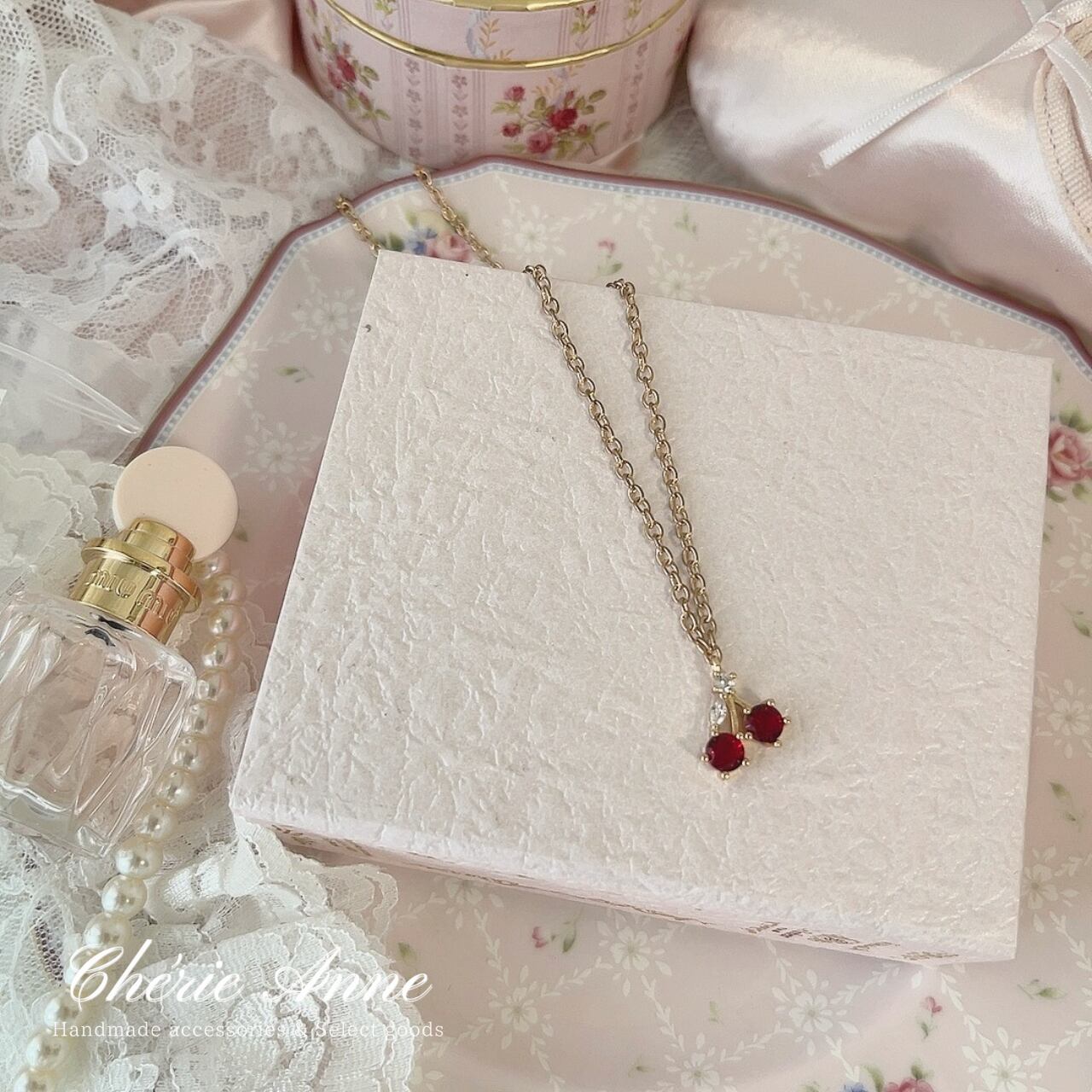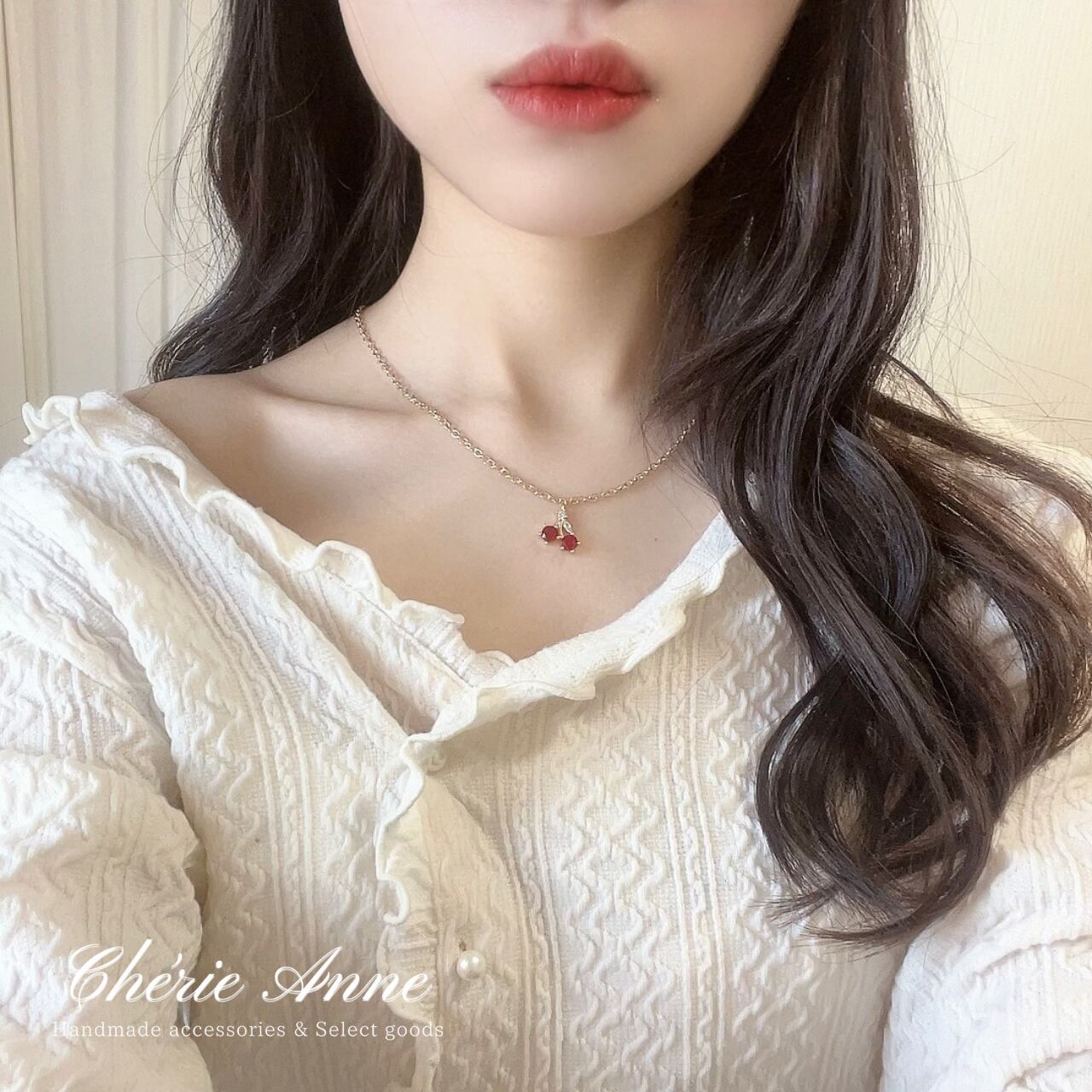 気品溢れるフレンチガーリースタイルを取り入れた、さくらんぼの純愛ネックレスで日常にスイートな彩りを添えてみて。