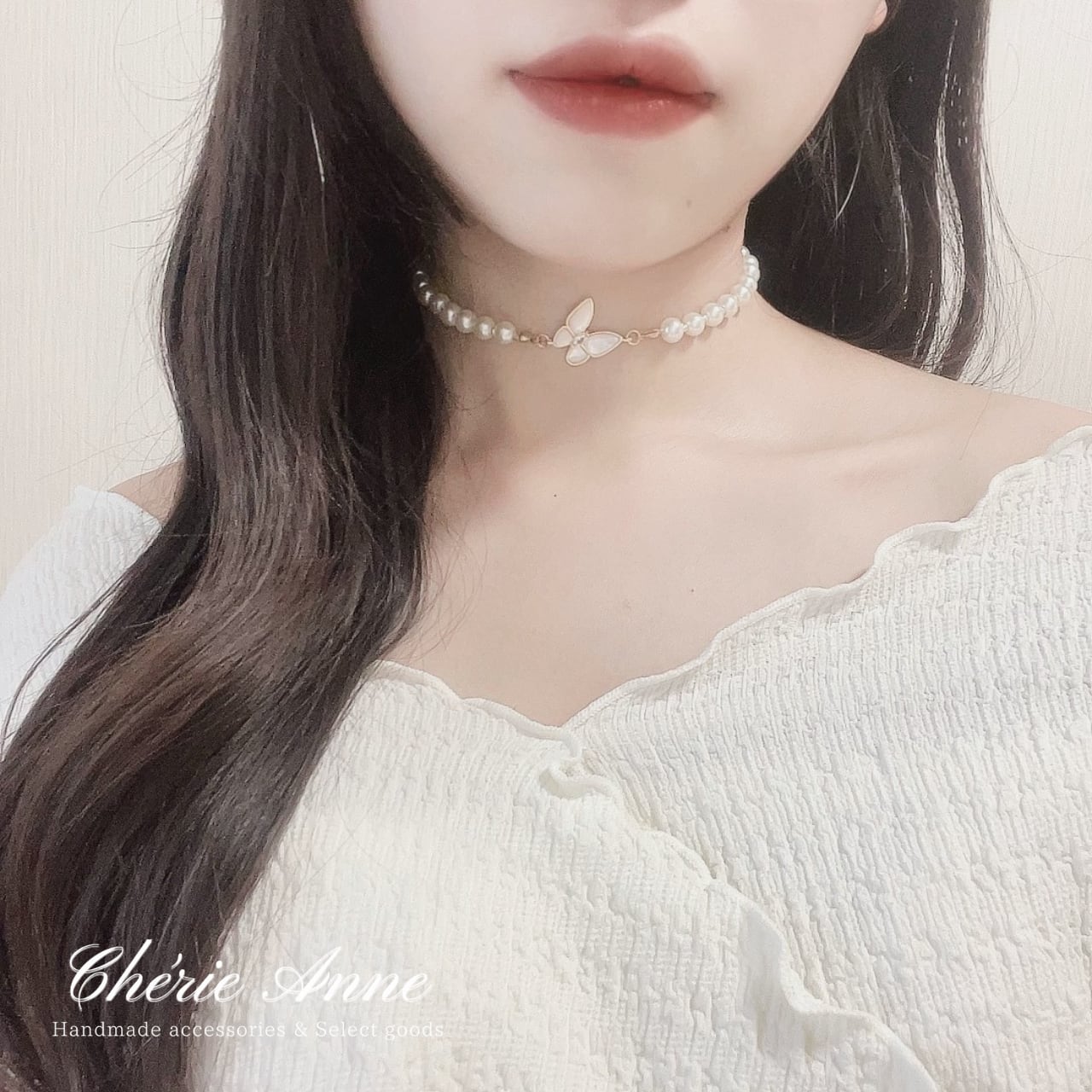 上品な蝶のモチーフが印象的で華やかなチョーカー。