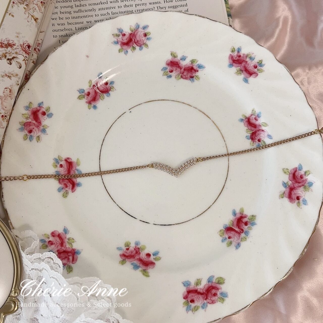 上品でガーリーなデザインが魅力的な華奢アクセサリーです。