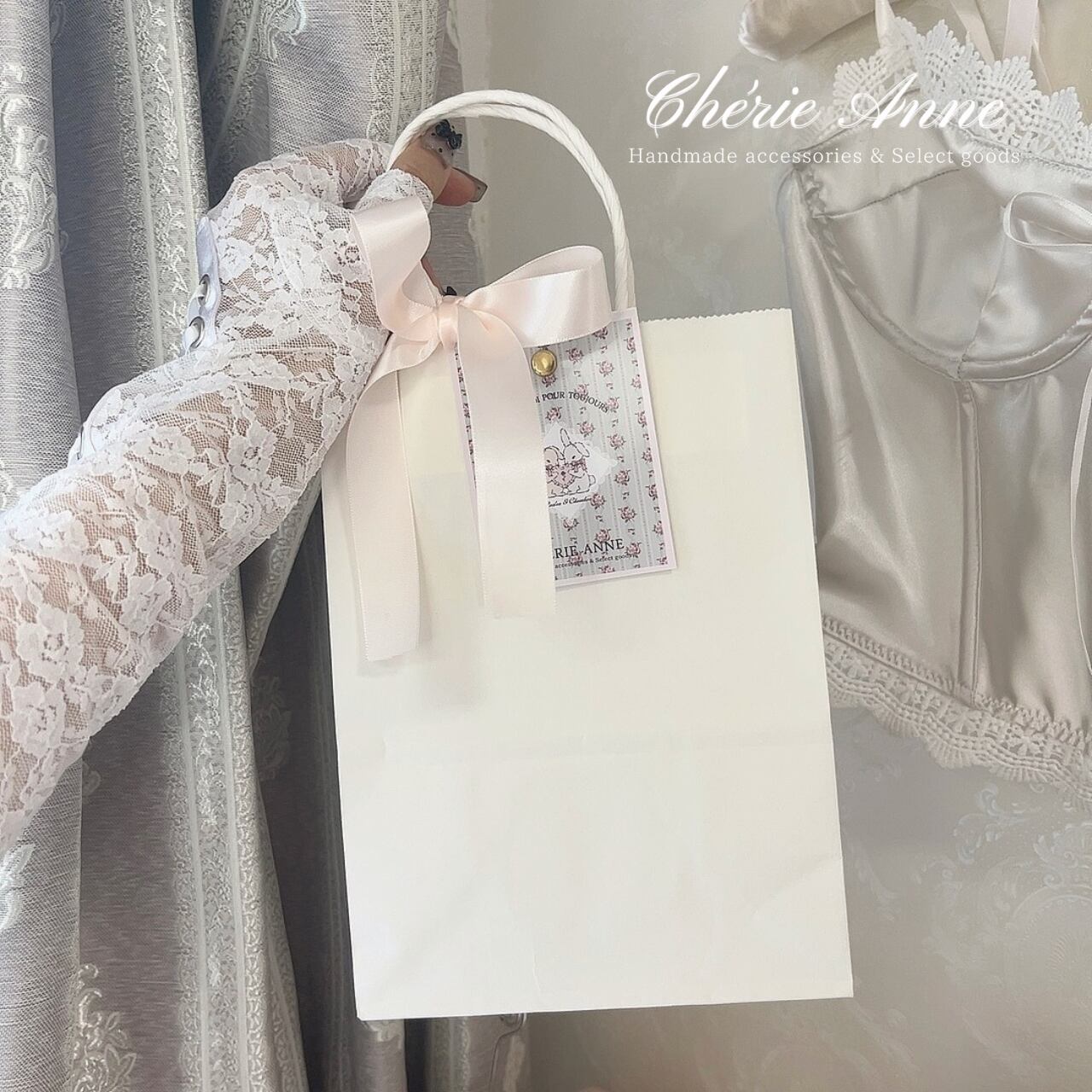 ボックスとセットになったデザイン。大きなリボンがポイントです。