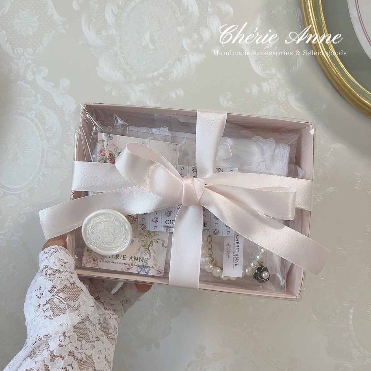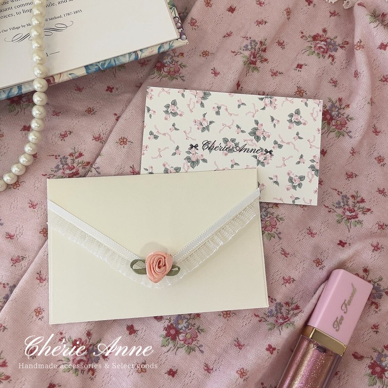 薔薇とレースを効かせて上品ガーリーに。大切な人へメッセージを添えて。