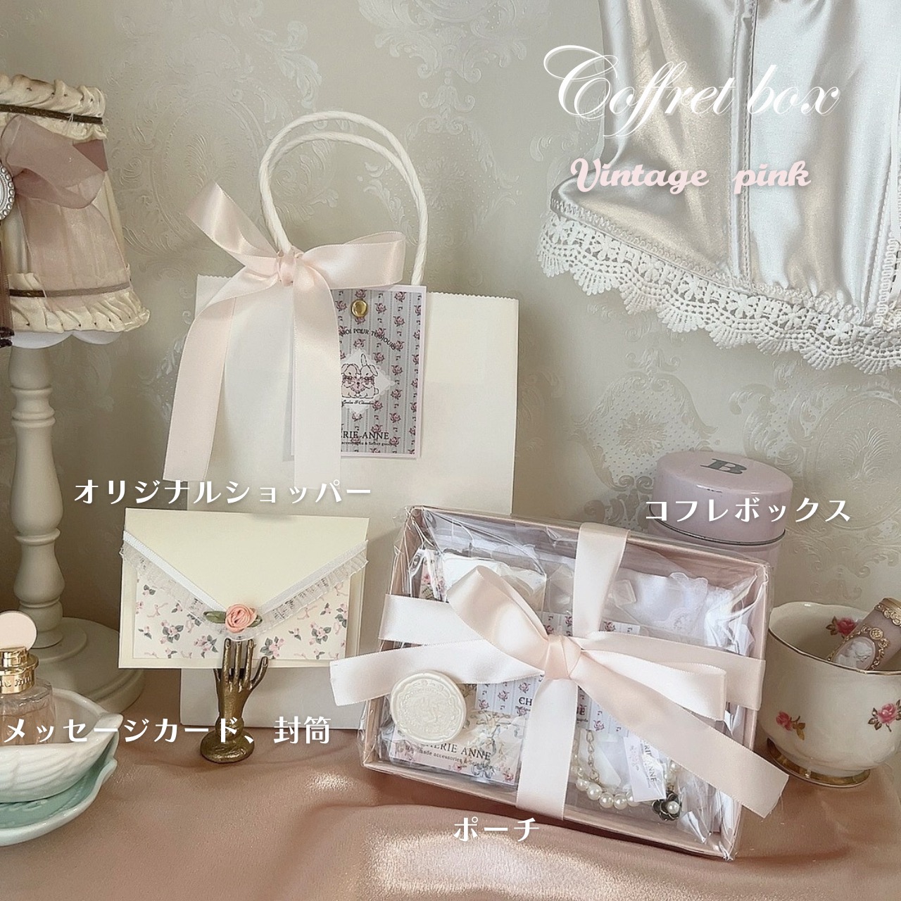 カラーはフレンチガーリースタイルのフレンチホワイトと、ヴィンテージガーリーな雰囲気のヴィンテージピンク。お好みのテイストを選んでみてください。