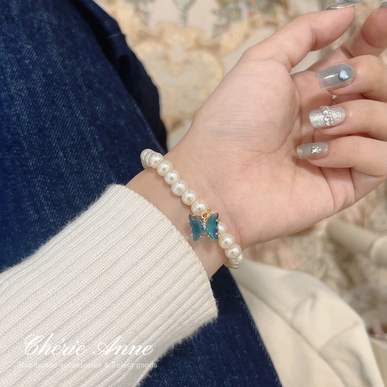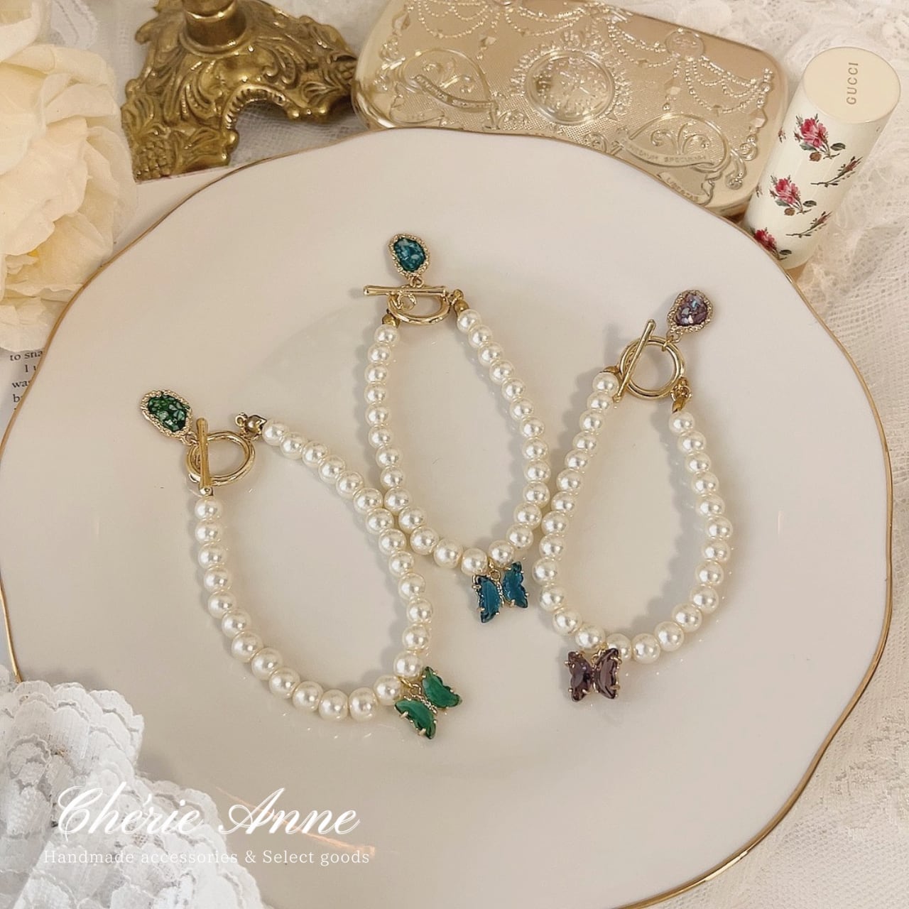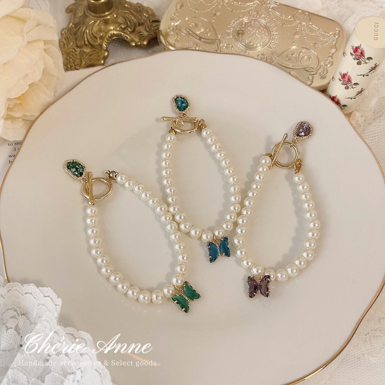 宝石と蝶々がキラキラ揺れる可愛いアイテムです。
