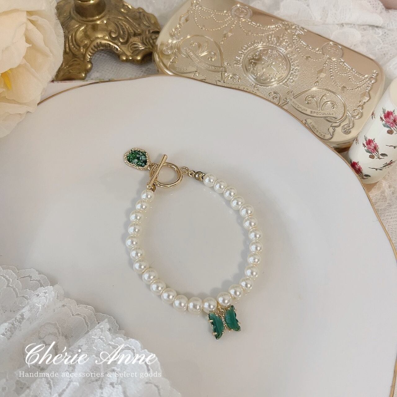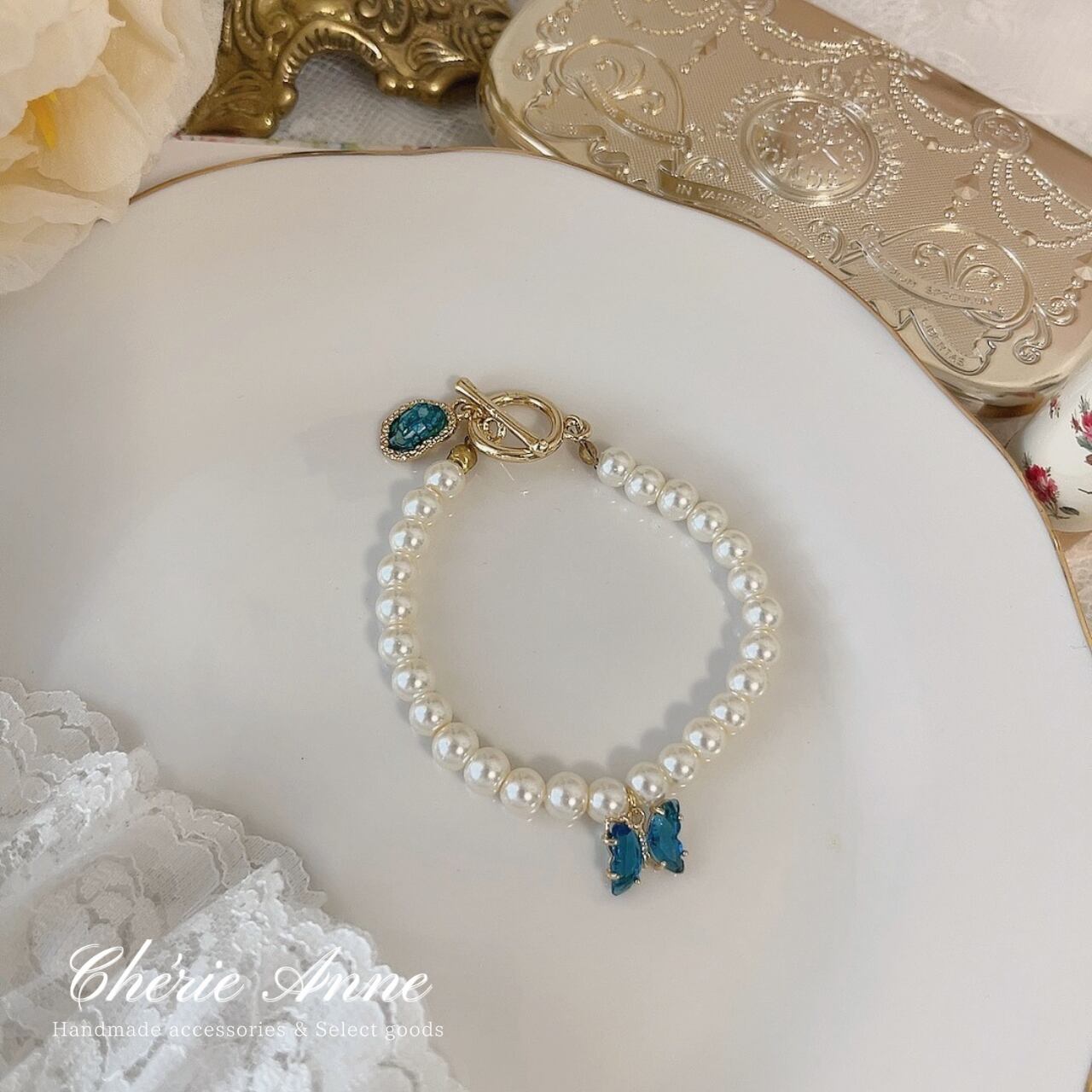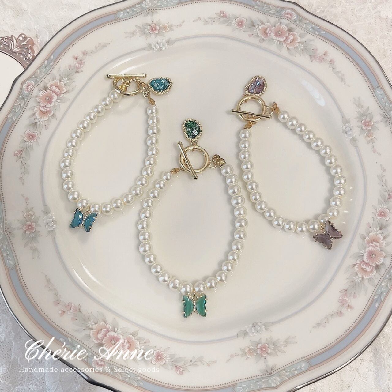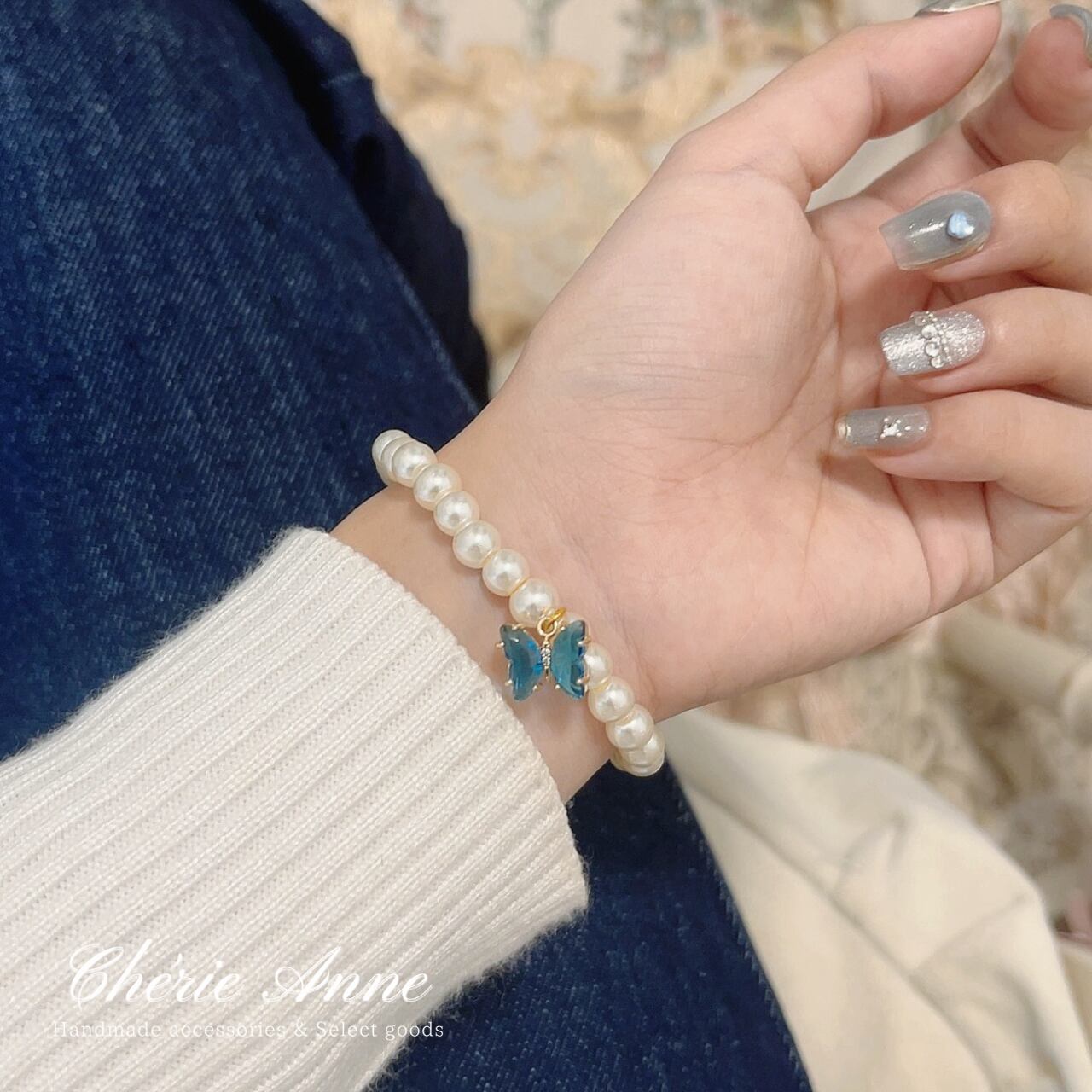 宝石と蝶々がキラキラ揺れる可愛いアイテムです。