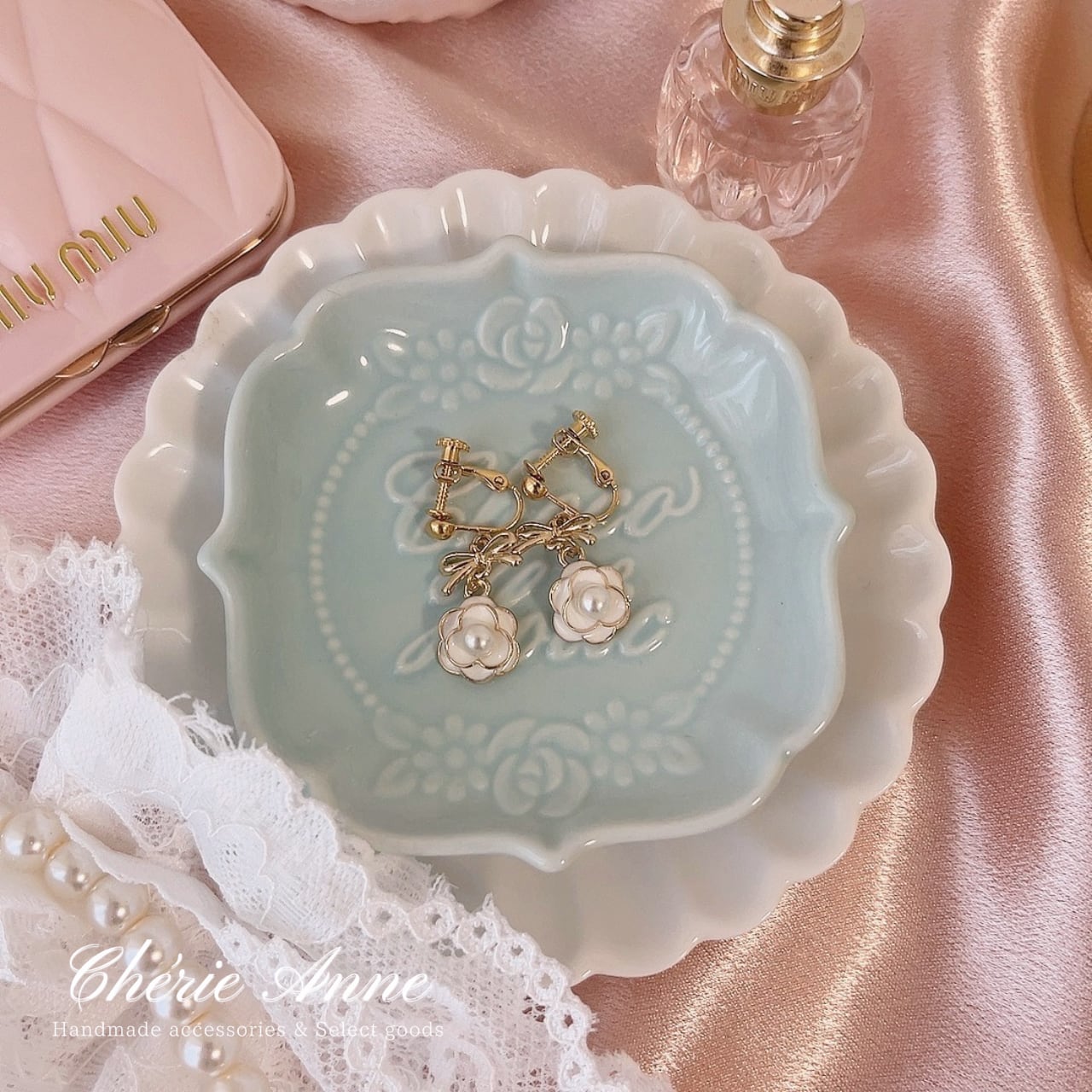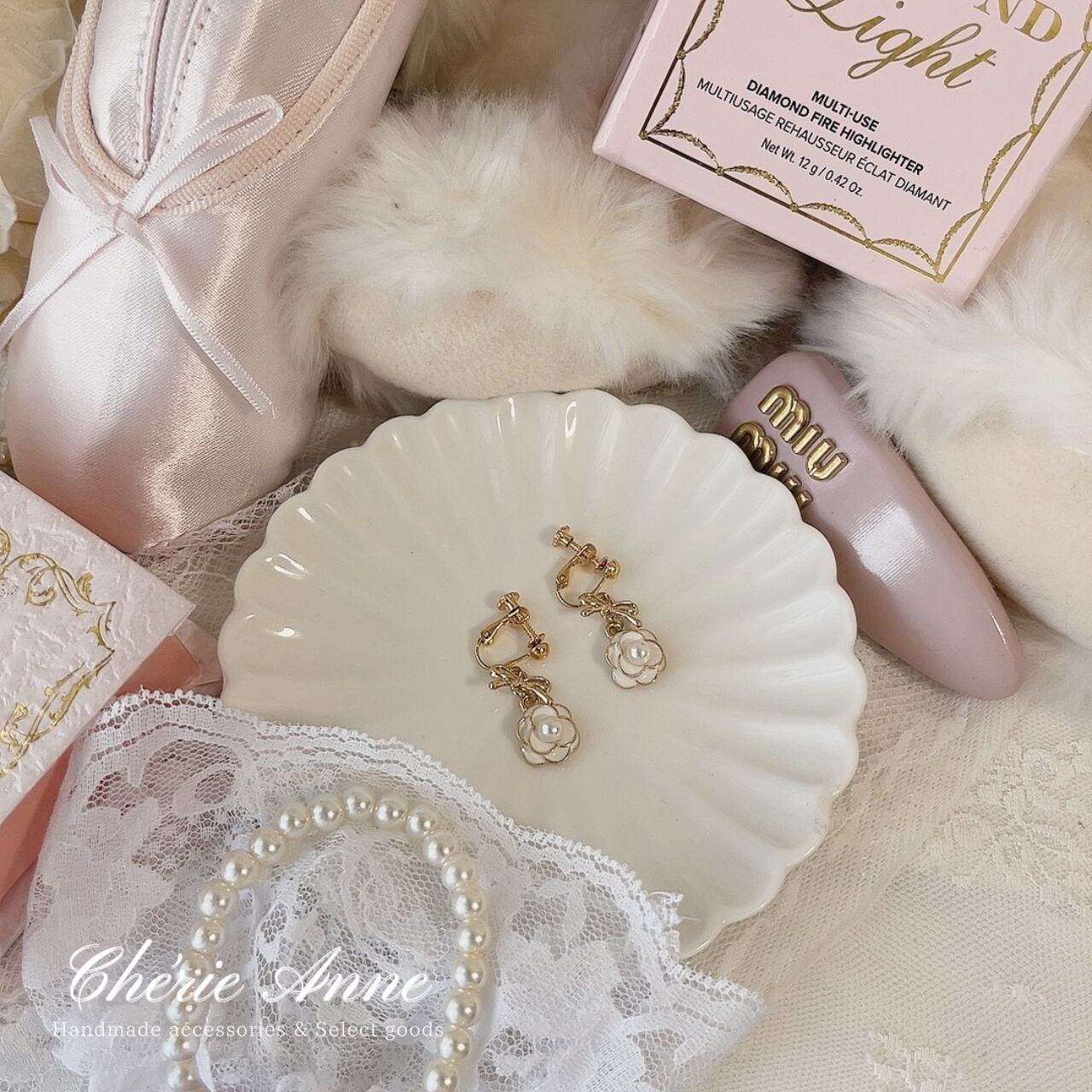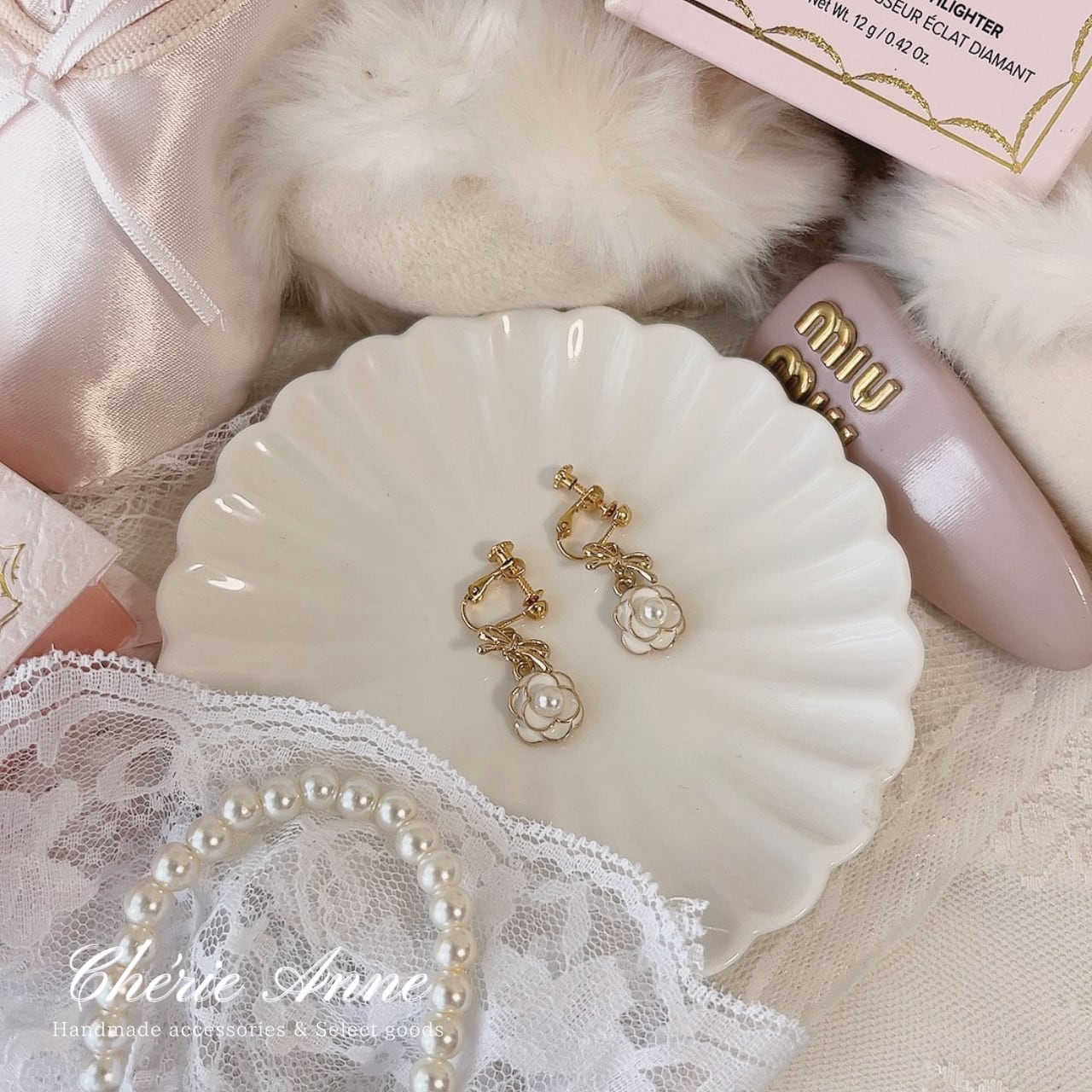 白薔薇のイヤリング。