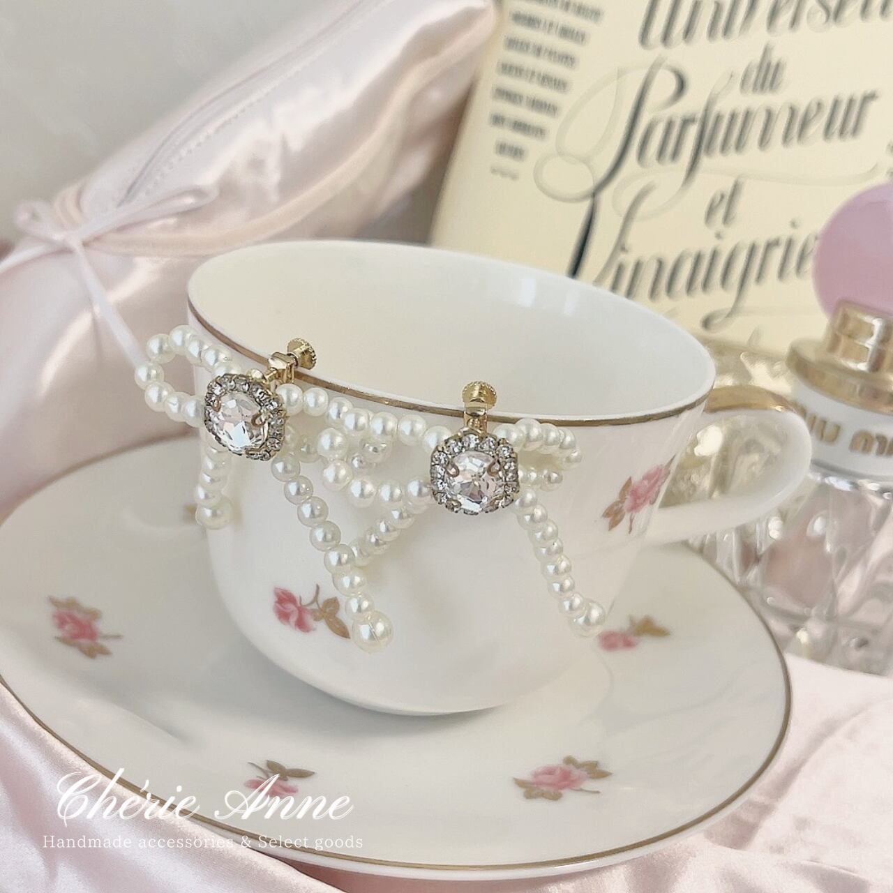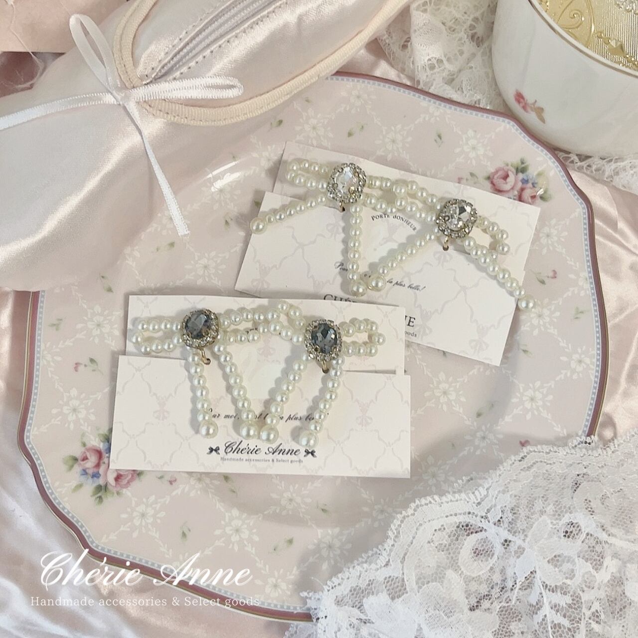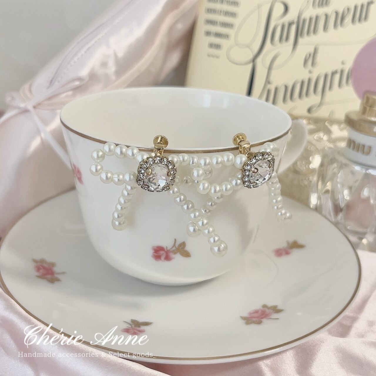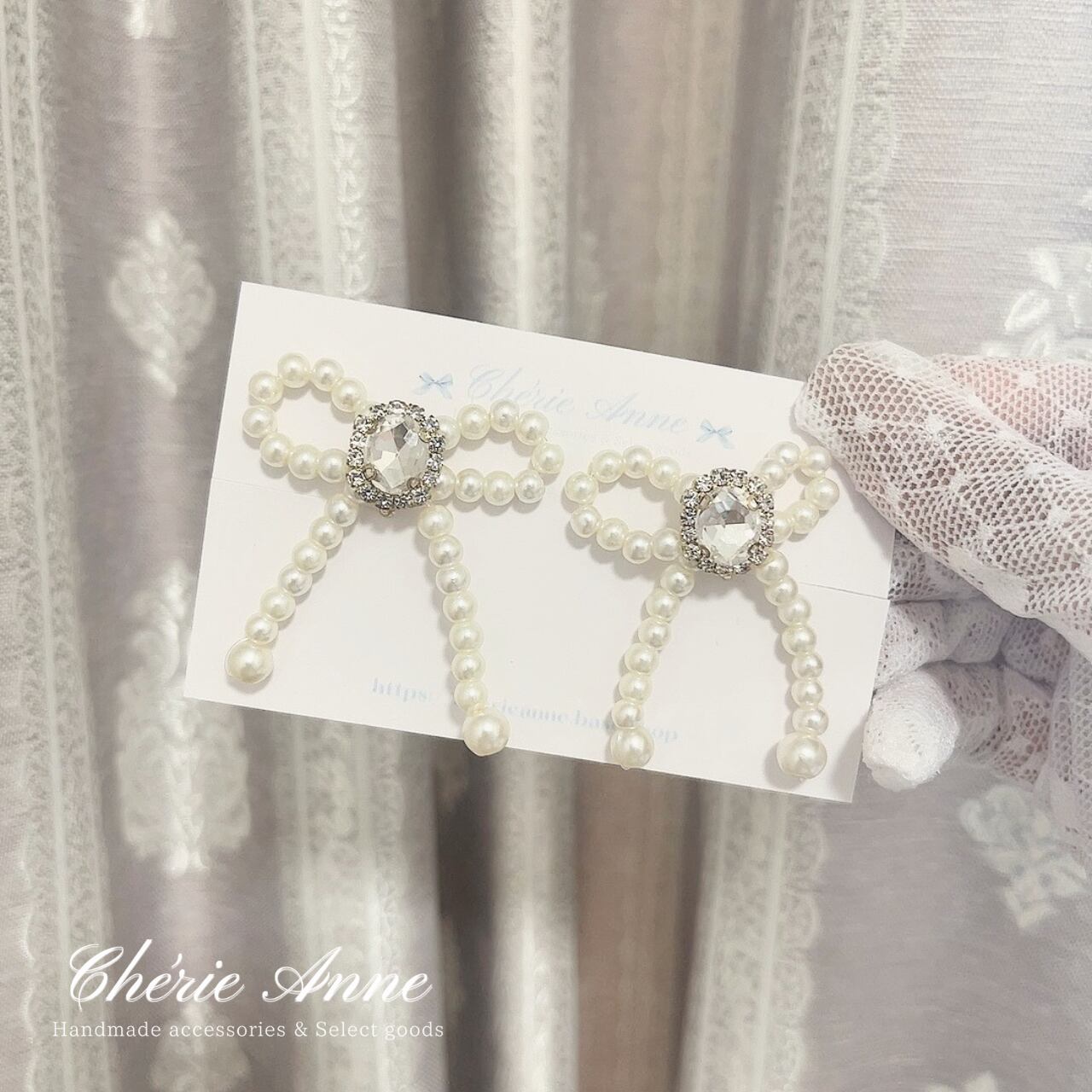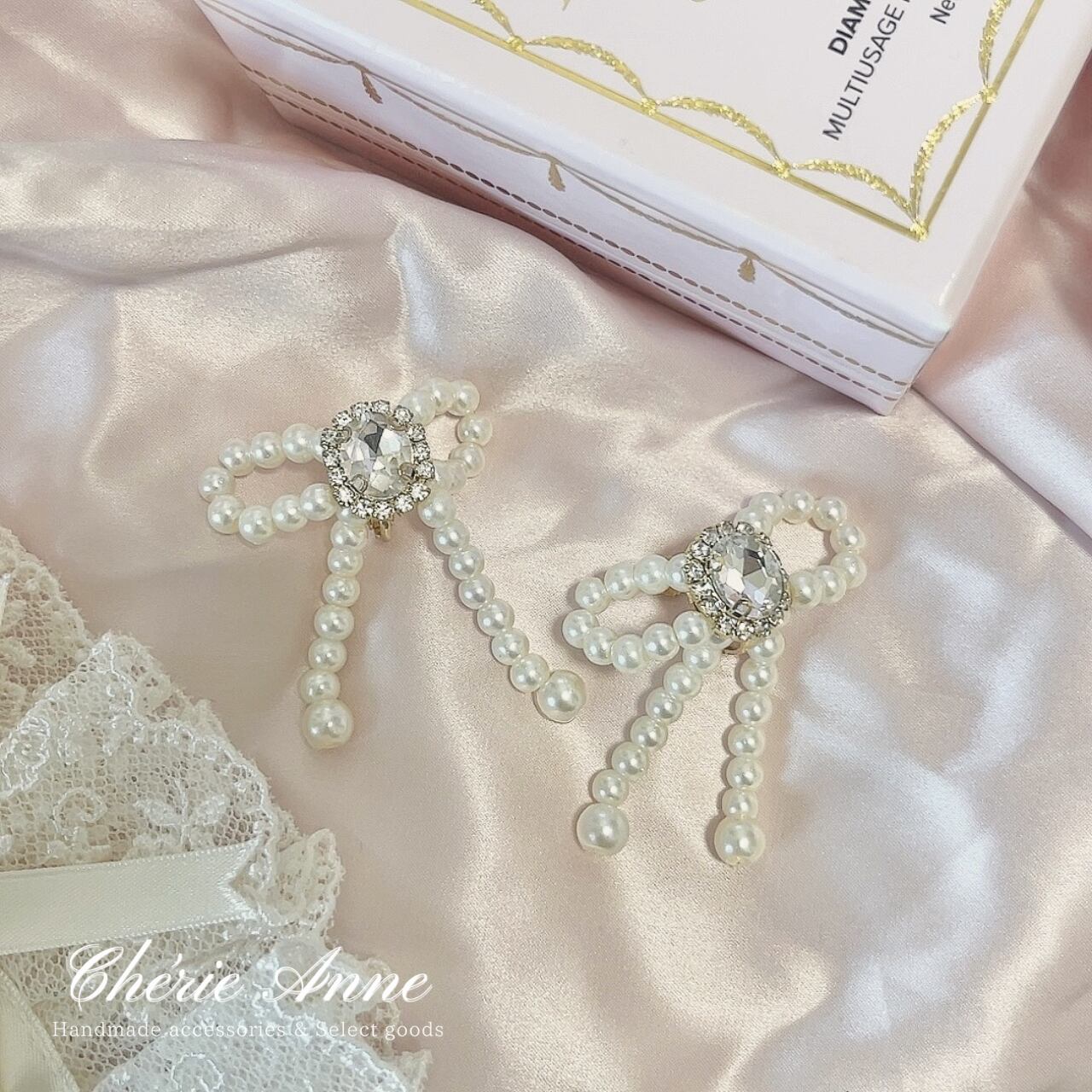 上品なパールと可愛らしいリボンデザインがマッチ。