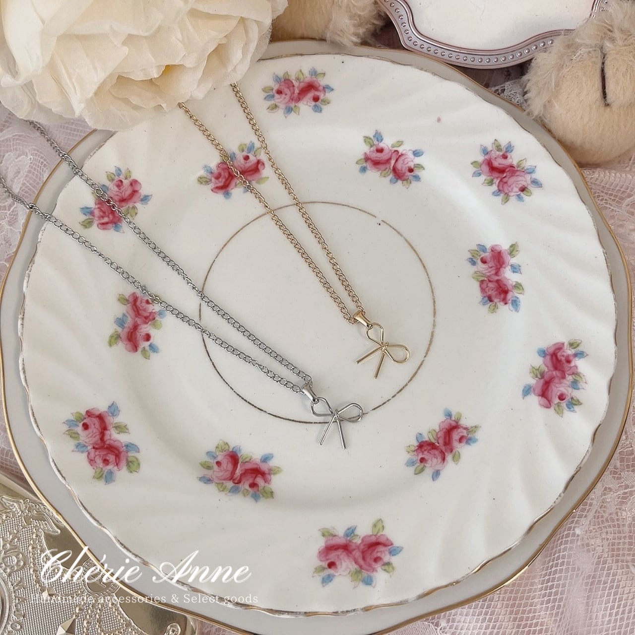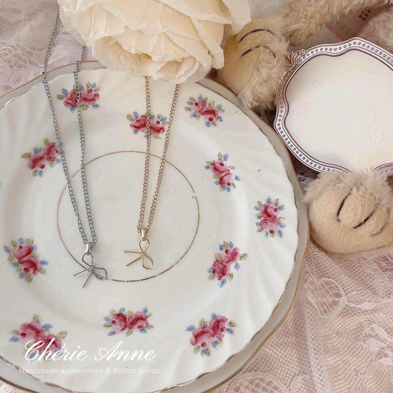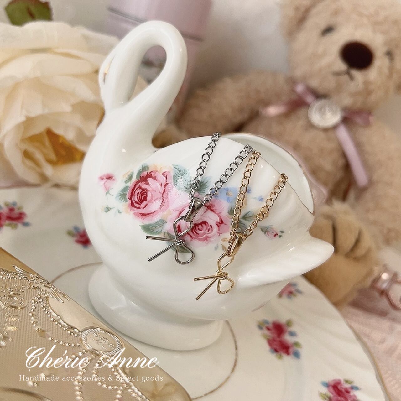 リボンがフェミニンでエレガントな印象を与えます。