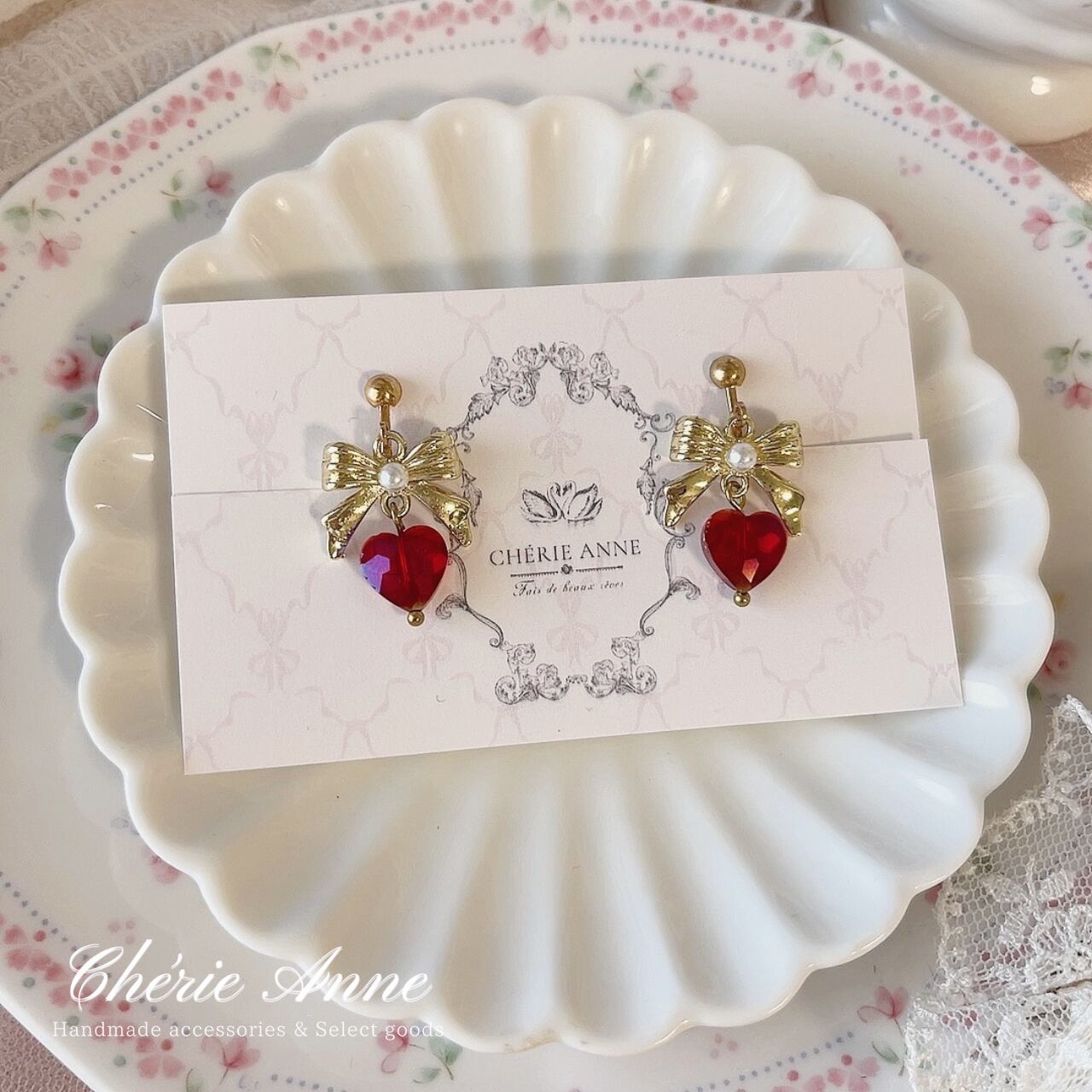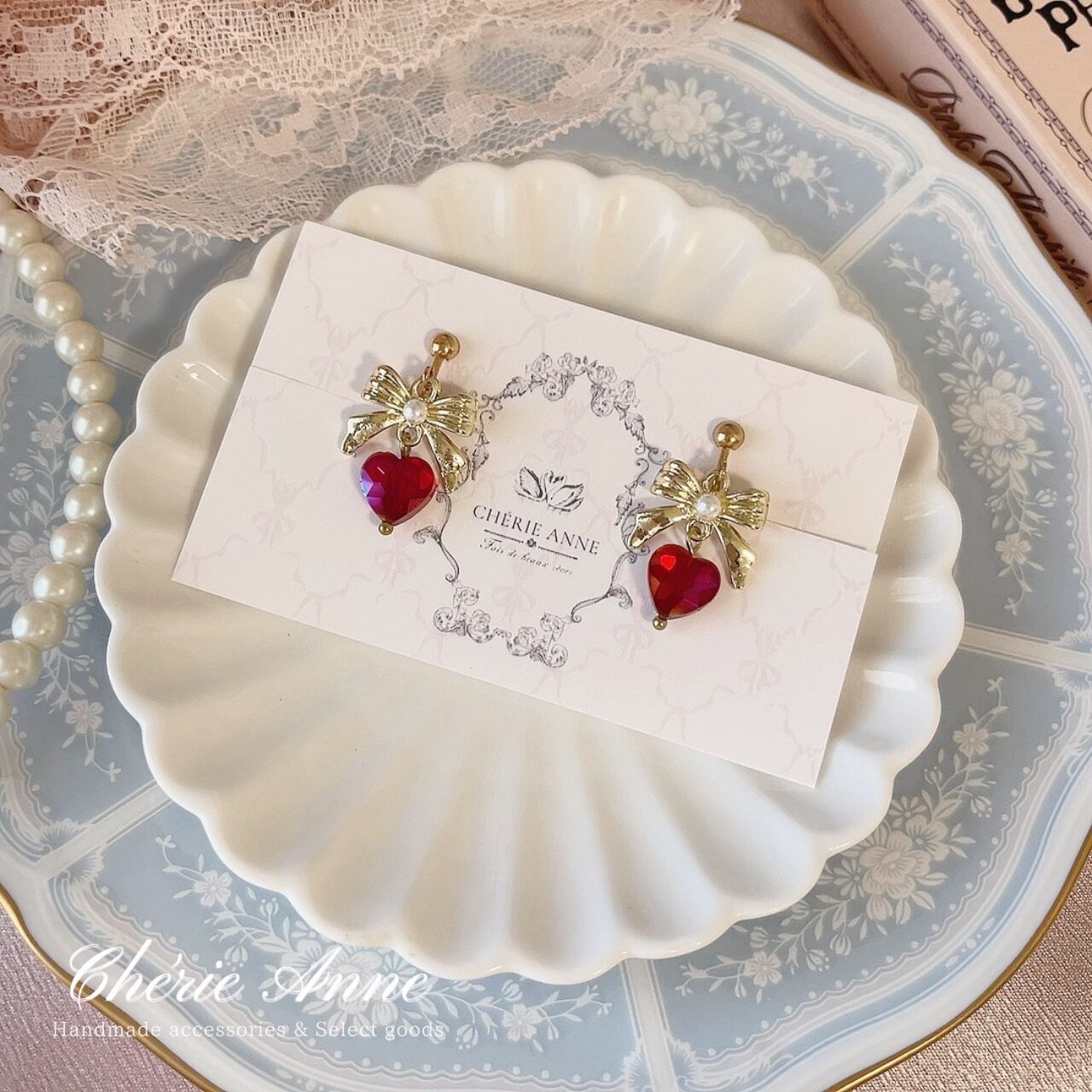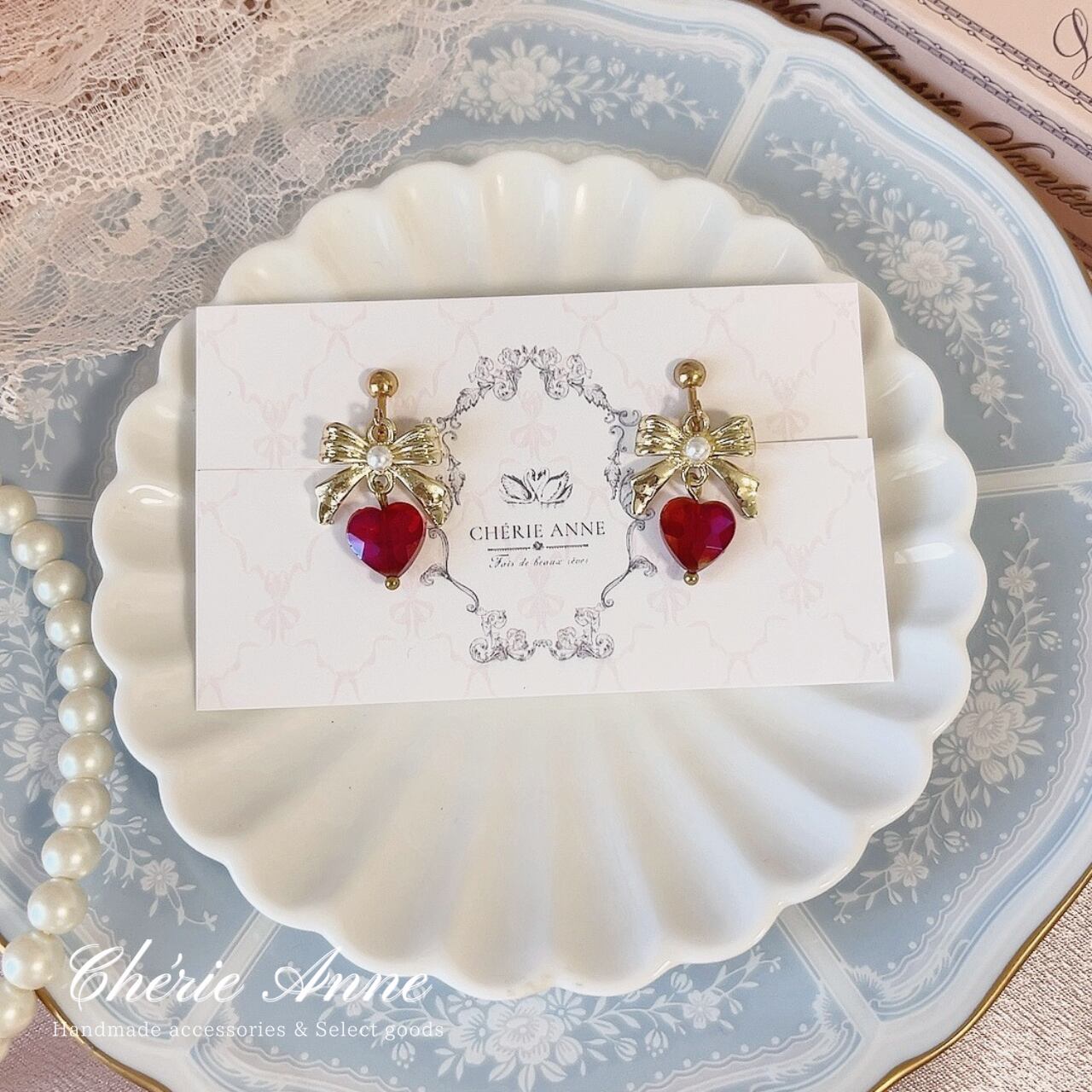 輝くハートモチーフときらめくストーンが、上品な女性らしさを引き立てます。