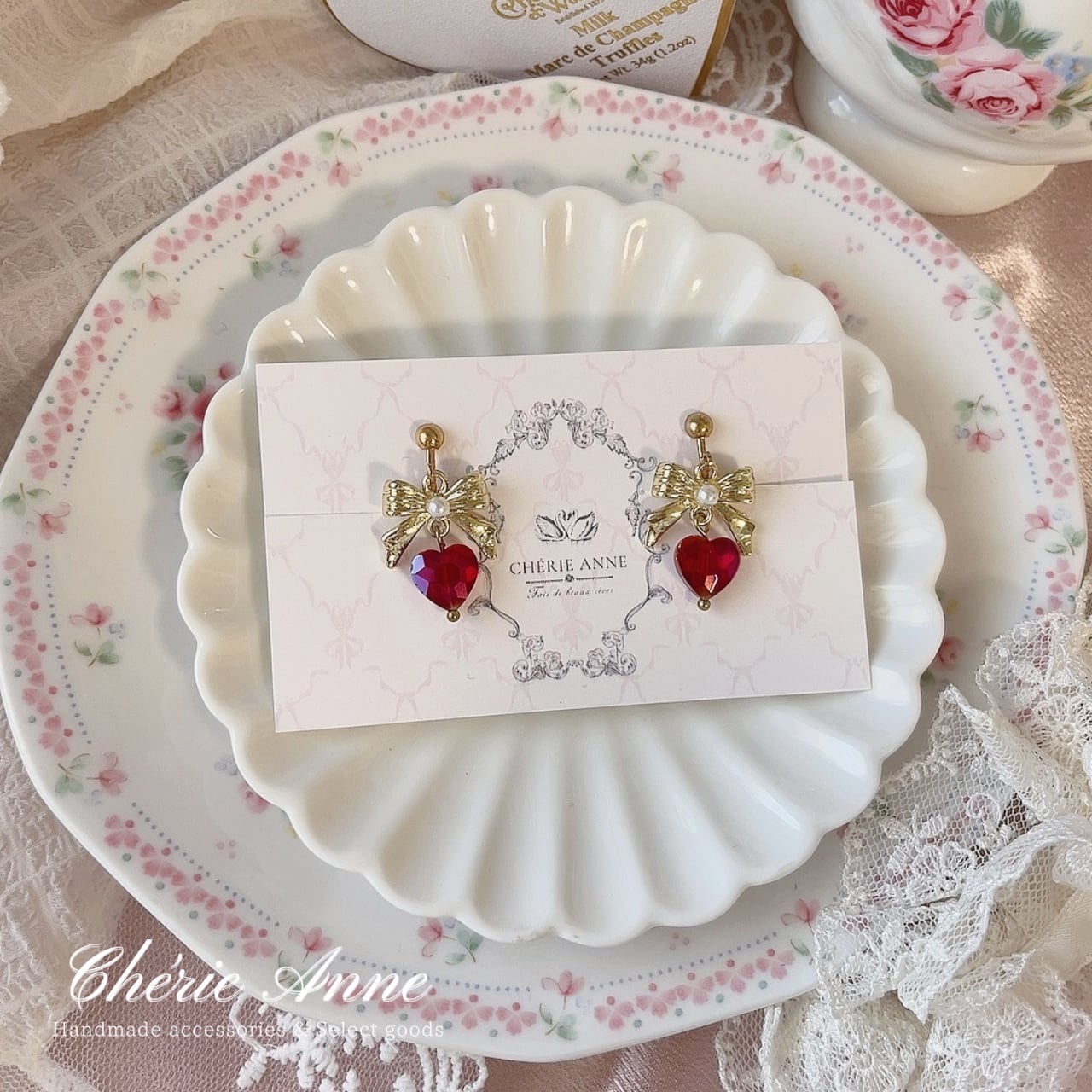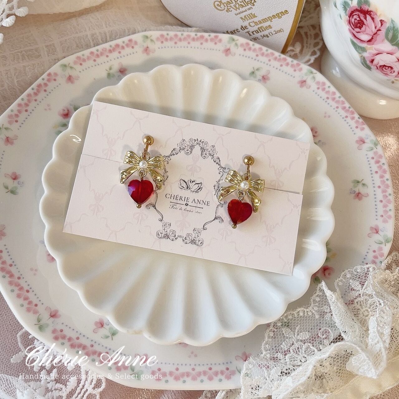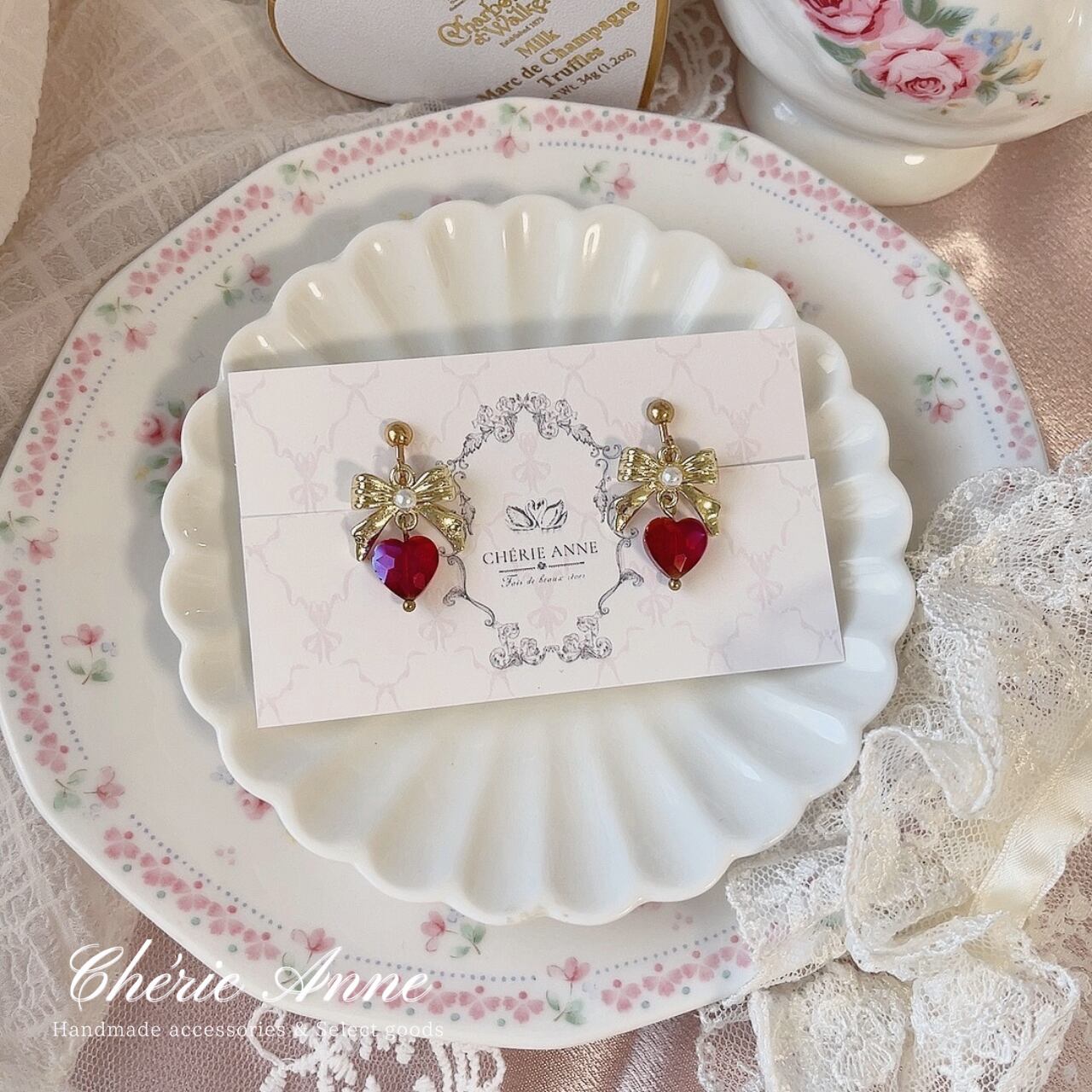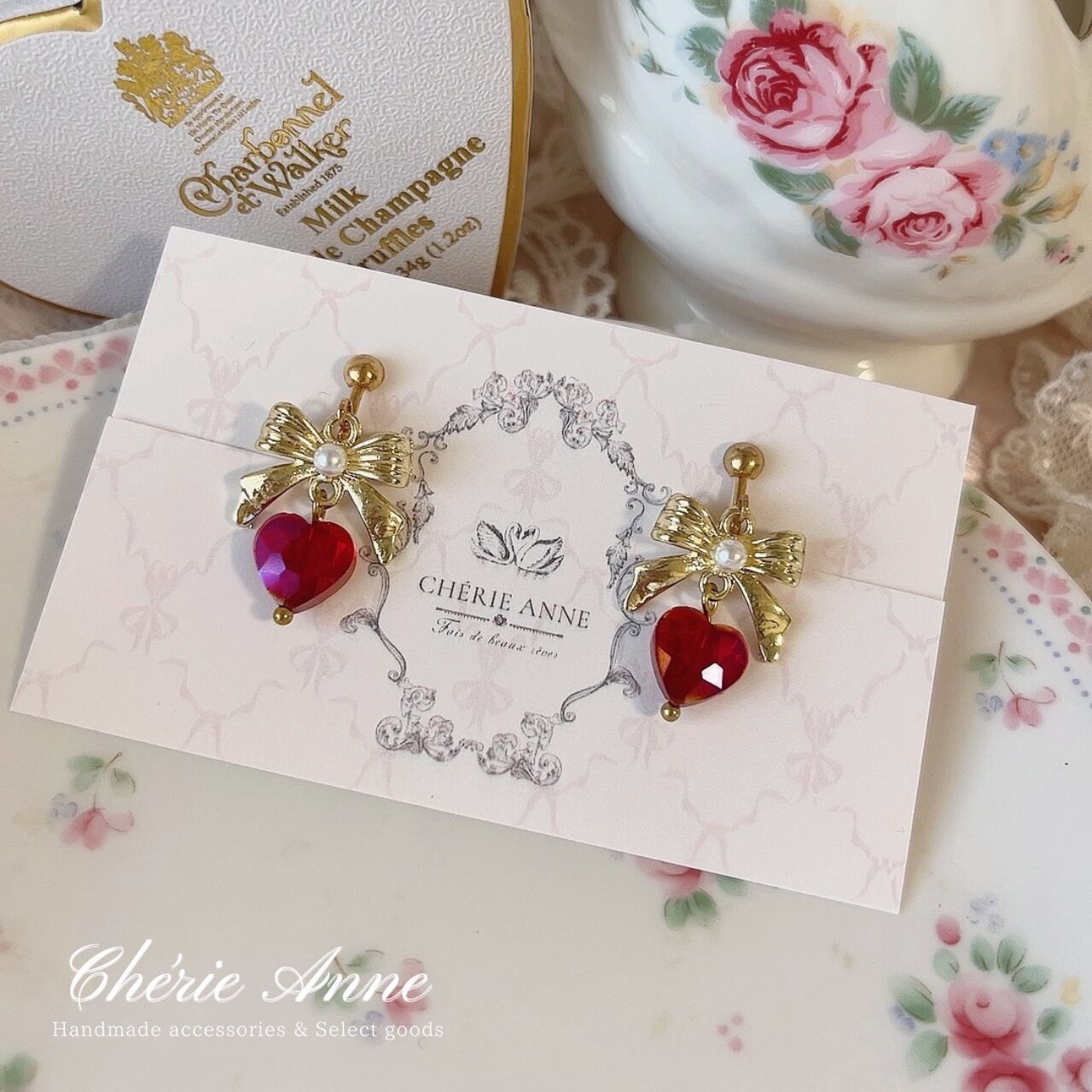 輝くハートモチーフときらめくストーンが、上品な女性らしさを引き立てます。