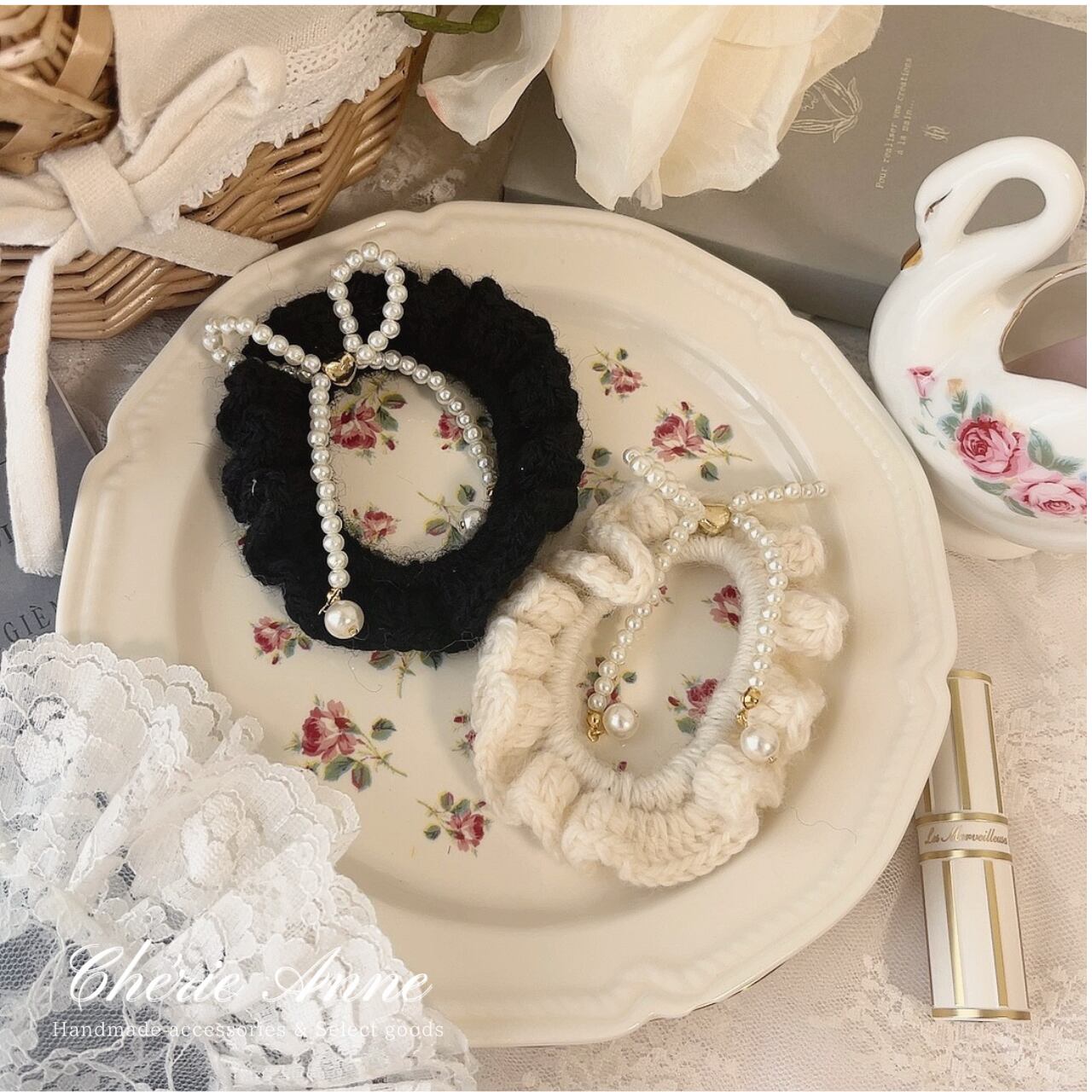フレンチガーリーデザインのニットシュシュが登場。