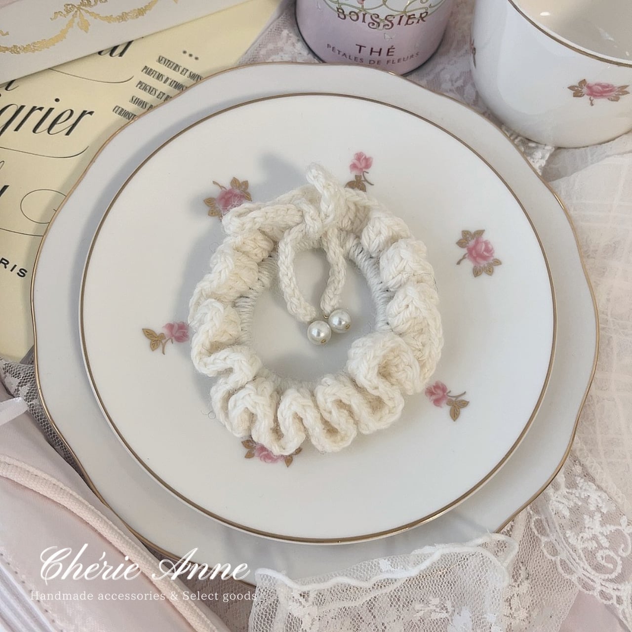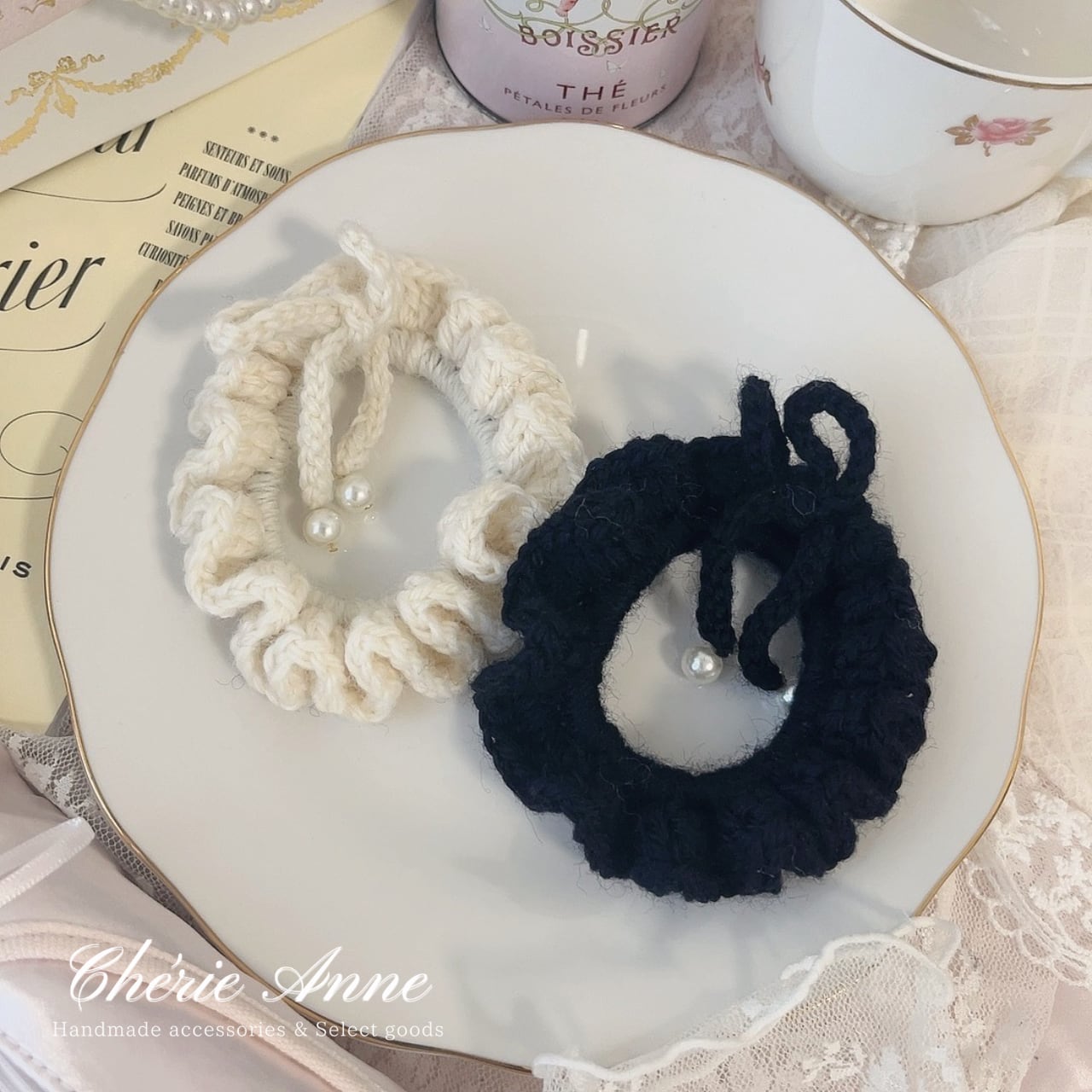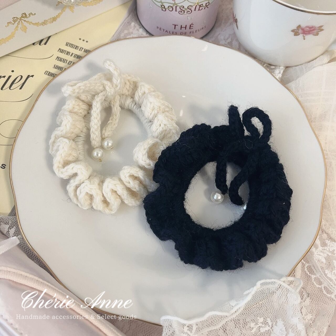 休日のお出かけにぴったりなニットシュシュ、リボンパールシュシュが登場しました♡
