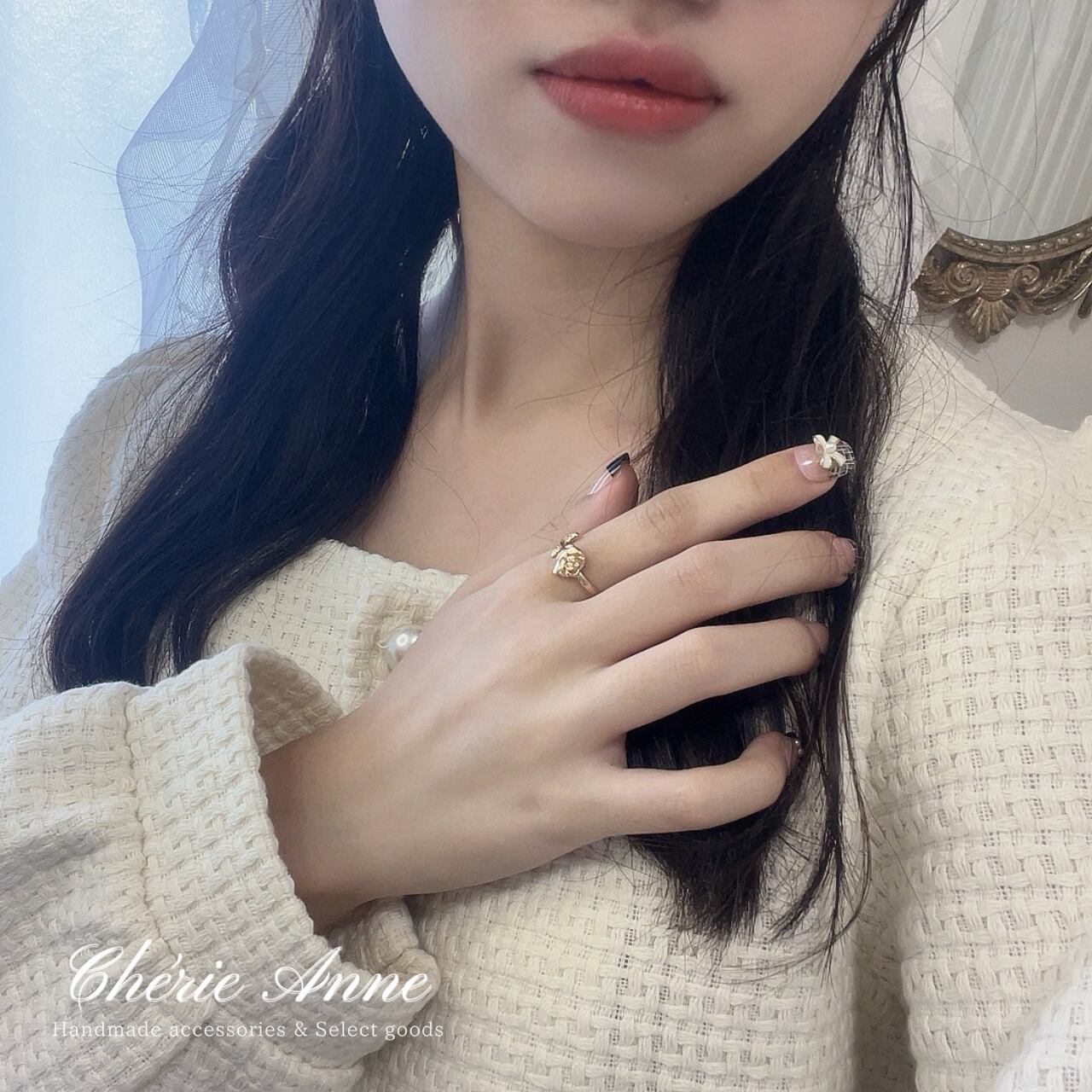 シンプルなコーディネートに華やかさを加える絶妙なアクセント。大人の女性の魅力を引き立てます。