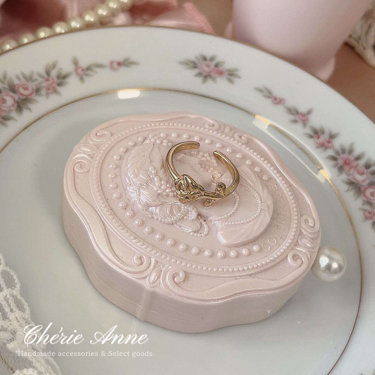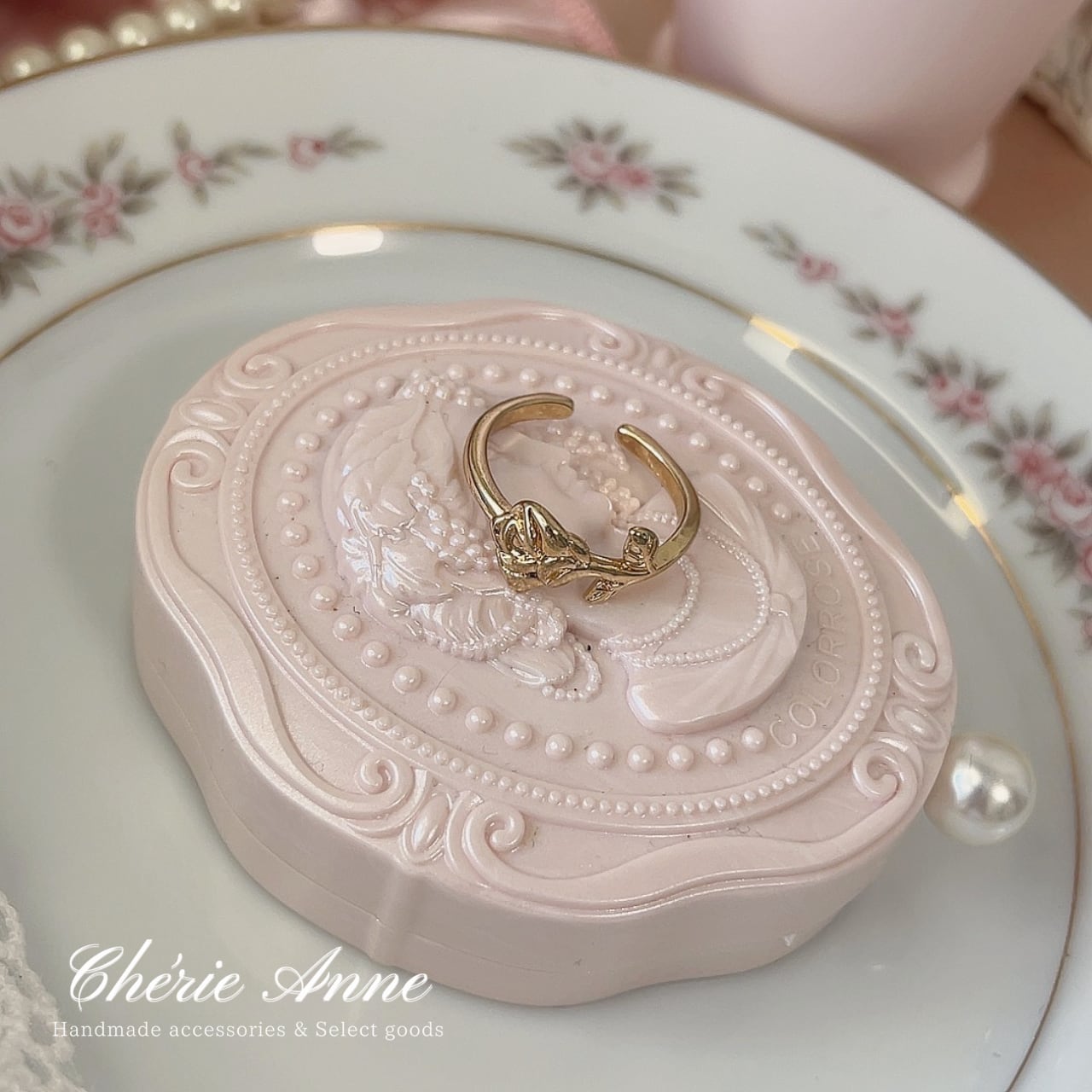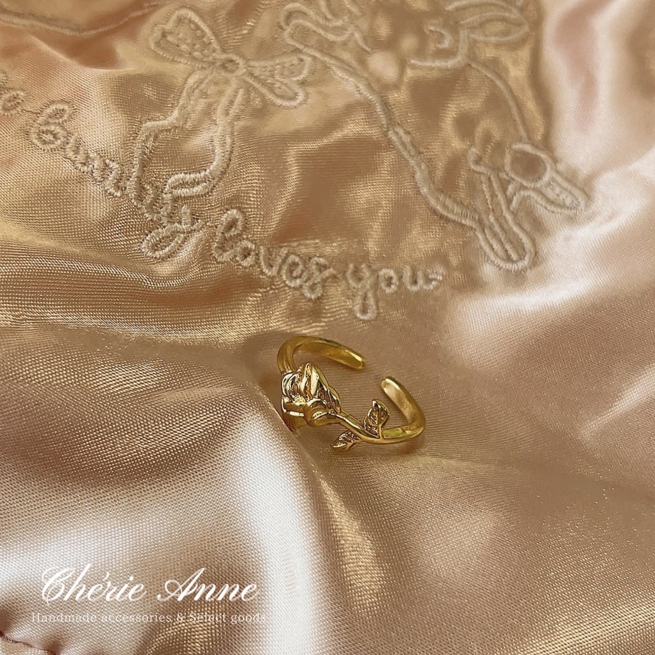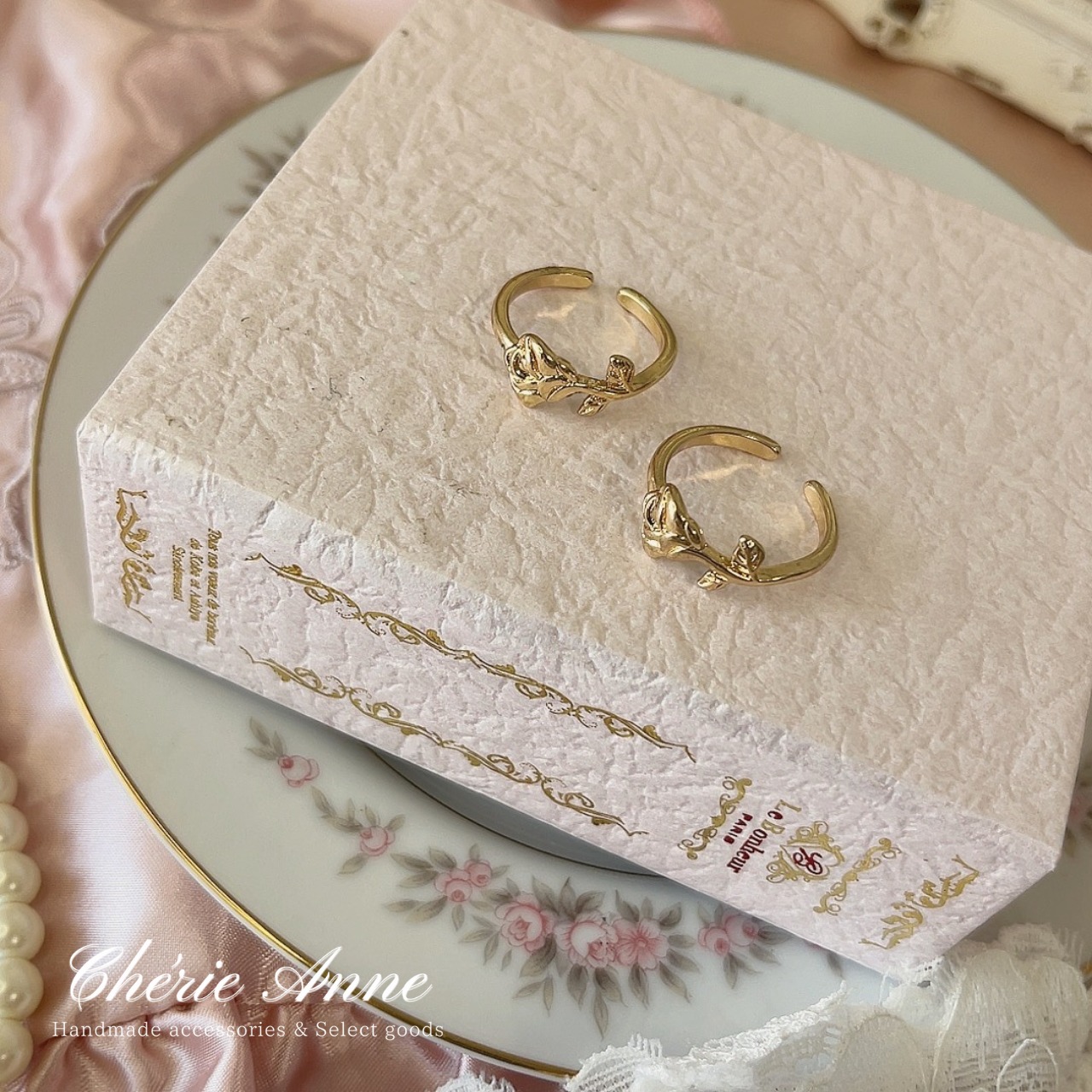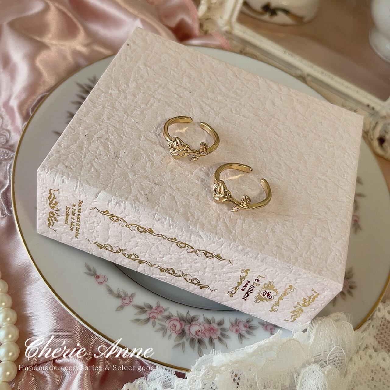 優雅な薔薇のレリーフが特徴的なゴールドリング。